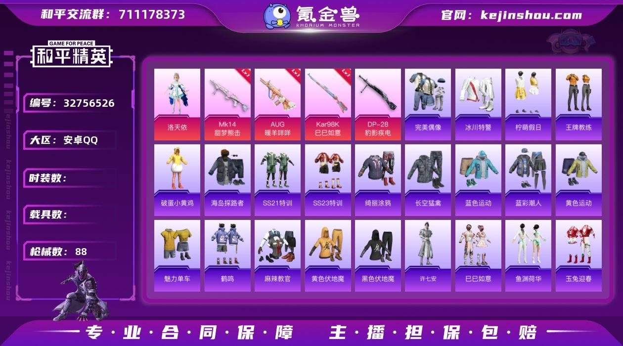 【地铁满天赋】c28021-【无二次协助处理】【因赛季更新游戏段付以上号为准!】 安卓Q-1粉装7特效枪1热门49套装88枪皮 1印记 历史超级王牌 【1粉装】 洛天依 【7特效枪】 AKS-74U-森灵之息 (5级) Kar98K-巳巳如意 (5级) DP-28-豹影疾电 (3级) AUG-暖羊咩咩 (5级) Mk14-甜梦熊击 (5级) Mk14-福马献瑞 (5级) AA12-G-萌骑幻想 (3级) 【1热门】 破蛋小黄鸡