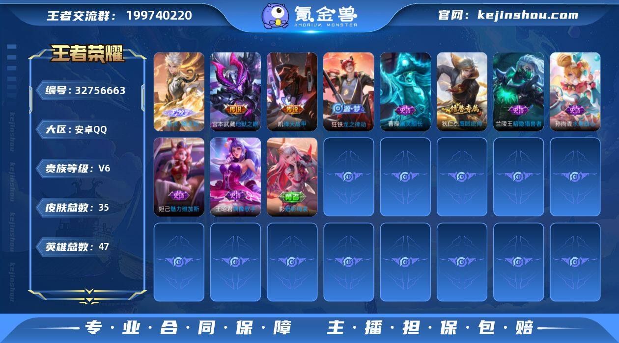 【精品推荐无双号·孙悟空无相·曜器灵螭龙剑·神骥逐星野·花木兰异界灵契·绛天战甲·地狱之眼·无二次包过】w21836-安卓Q-47英雄-35皮肤-1王者印记-20铭文-贵族积分1w【贵族6】【2无双·4传说·4按键】【因赛季更新游戏段付以上号为准!】 【无双皮肤】:孙悟空无相,曜器灵螭龙剑 【传说皮肤】:马超神骥逐星野,花木兰异界灵契,铠绛天战甲,宫本武藏地狱之眼 【限定皮肤】:赵云皇家上将,元歌无心,狄仁杰魔术师,项羽海滩派对,妲己灵卜魔法 【赛季限定】:亚瑟荣光之誓 【战令限定】:妲己灵卜魔法,周瑜线条小狗,小乔线条小狗 【史诗皮肤】:明世隐百晓客,周瑜线条小狗,小乔线条小狗,狂铁龙之律动,妲己灵卜魔法,元歌无心,狄仁杰鹰眼统帅,兰陵王暗隐猎兽者,曹操幽灵船长,妲己魅力维加斯,孙尚香水果甜心,狄仁杰魔术师,王昭君偶像歌手,赵云皇家上将 【其他皮肤】:鲁班七号班班快跑,桑启线条小狗,虞姬溯影追猎,亚瑟荣光之誓,影魅影绮裳,妲己灵卜魔法,诸葛亮掌控之力,后羿阿尔法小队,亚瑟死亡骑士,项羽海滩派对,暃碧珀绯影,马超幸存者,曜归虚梦演,铠龙域领主,干将莫邪第七人偶,马可波罗激情绿茵