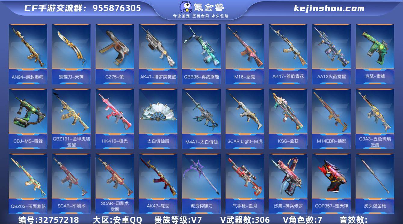 【942868】精英-9英雄角色数-297英雄武器数 【王者系列】:王者之心,王者之蝶,王者之兽,王者之狱,王者之魂,M12S-雷霆王者,王者之尊 【热门武器】:KSG-孟获,81式-光明之神,AK47-策,AK47-奉先,M4A1-星象,M4A1-游骑兵,M200-幻神,AWM-妙才,AWM-游骑兵,COP 357-堕天神*2 【角色】:萝拉,葵,关小雨*3,晴雅,乔月,炽天使-X,零-新生 【英雄武器】:AK47-无影,AK47-火麒麟*2,AK47-角斗士,AK47-猩红传说,AK47-雷麒麟,AK47-奉先,AK47-血武士*2,AK47-策,AK47-黑鲨,AK47-风神翼龙,AK47-木兰,AK47-轮回,AK47-雅韵青花,AK47-塔罗牌觉醒,AK47-谜城烟火*2,M4A1-雷神*2,M4A1-黑骑士*2,M4A1-黑龙,M4A1-死神*6,M4A1-游骑兵,M4A1-星象,M4A1-樱龙·超觉,M4A1-Rush-夜袭,M4A1-变色龙,M4A1-机械迷城,M4A1-赛博雷神*2,M4A1-海骑士,M4A1-冰锋觉醒,M4A1-心动次元,M4A1-运输船*2,M4A1-太白诗仙,SCAR Light-白虎,SCAR-探星者*2,SCAR-印刷术,SCAR-印刷术觉醒,SCAR-心动PICK,AN94-超新星,AN94-赳赳秦师,AUG-机械纪元,9A91-游骑兵,M14EBR-暗夜,M14EBR-天神,M14EBR-拂影,M14EBR-玄武,M16-恶魔,AK12-天启,QBZ03-金色蔷薇*2,QBZ03-死神,QBZ0...