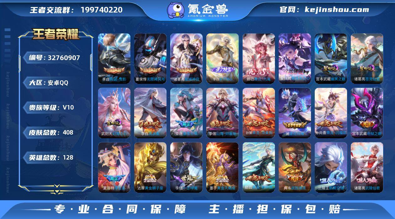 【连体吃鸡-果Q7粉8枪1车】【店铺主推v10·4典藏·2无双·1珍品·4星传说·56传说·青丘九尾·碎月剑心·酷洛米之心·苍灵仙君·一梦云烟天幕·满龙年限定·愿照千秋盛·金乌负日·落雪白狼·吕布曦玄引·浮生妄·可二次】w21855-安卓Q-128英雄-408皮肤-8王者印记-214铭文-贵族积分23w【贵族10】【v10·4典藏·2无双·1珍品·4星传说·56传说·1天幕·24按键·50个性戳戳·269幸运值】【因赛季更新游戏段付以上号为准!】 【英雄全皮】:姜子牙全皮,孙权全皮,刘备全皮,海月全皮,夏洛特全皮 【荣耀典藏】:武则天英雄,夏侯惇无限飓风号,李白鸣剑曳影,诸葛亮星域神启 【无双皮肤】:李白碎月剑心,妲己青丘九尾 【珍品传说】:安琪拉酷洛米之心 【星元皮肤】:诸葛亮苍灵仙君,鲁班七号寅虎焰心,武则天幻海之心,宫本武藏幽冥之眼 【天幕】:一梦云烟天幕 【传说皮肤】:后羿神树通天,女娲愿照千秋盛,桑启鸣野蒿,云中君群星魔术团,墨子黄金天蝎座,海月金乌负日,亚连落雪白狼,吕布曦玄引,典韦战鼓燎原,孙尚香乘龙问璇玑,孙策乘龙淬吴钩,赵云乘龙铭钟鼎,铠琥珀纪元,澜逐花归海,艾琳觅芳踪,马可波罗妄想实况,东皇太一灼幽烈阳,诸葛亮鹤羽星尊,澜电玩雷克斯,夏洛特浮生妄,孙悟空齐...