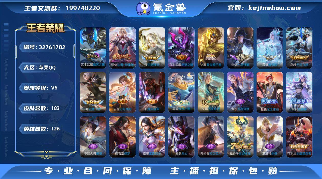 苹果Q-V6-最强王者段位-126英雄-183皮肤-11传说-47史诗【英雄全皮】:孙权全皮【传说皮肤】:马超神骥逐星野,云缨幻光神枪,露娜霜月吟,李信山海炽霜斩,马超无双飞将,铠绛天战甲,镜炽阳神光,曜云鹰飞将,李信一念神魔,达摩黄金狮子座,宫本武藏地狱之眼 幽冥之眼【限定皮肤】:姜子牙天穹之誓,狄仁杰阴阳师,赵云皇家上将,孙尚香蔷薇恋人,庄周高山流水,高渐离玩趣恶龙,芈月幻夜卜梦,元歌无心,狄仁杰魔术师,狄仁杰万华元夜,达摩沙漠行僧,项羽海滩派对,兰陵王金庭之子,后羿圣弓游侠,李元芳云中旅人,钟馗驱傩正仪,杨玉环遇见飞天,干将莫邪真爱魔法,鬼谷子原初探秘者,鬼谷子五谷丰年,黄忠火炮绅士,苏烈千军破阵,百里玄策原初追逐者,沈梦溪大漠名商,裴擒虎擒涛扼浪,李信山海炽霜斩,上官婉儿梁祝,嫦娥暖冬兔眠,鲁班大师探海日志,桑启海盐诗旅,暃星界游侠,艾琳女武神,张良古海寻踪,蒙恬荣光圣徽,鬼谷子天穹祈灯,沈梦溪龙舞盛年,刘邦剑破天穹,周瑜熔金海岸【年限皮肤】:李信山海炽霜斩【赛季限定】:鬼谷子原初探秘者,狄仁杰万华元夜,钟馗驱傩正仪,苏烈千军破阵,达摩沙漠行僧,兰陵王金庭之子,沈梦溪大漠名商,李元芳云中旅人,桑启...