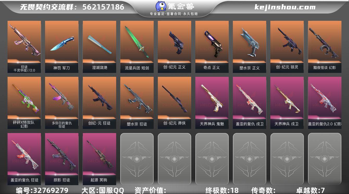 【套装】:创·纪元套装 【英雄】:幻棱,炼狱,维斯,暮蝶,钛狐,壹决,铁臂,捷风,雷兹,幽影,不死鸟,贤者,猎枭,蝰蛇,零,芮娜,奇乐,尚勃勒,霓虹,斯凯,夜露,星礈,K/O,海神,盖可,黑梦,钢锁 【近战武器】:近战武器-碎心裂刃,近战武器-落英飞旋,近战武器-镭切,近战武器-澄湖潋滟,近战武器-流星兵团 短剑,近战武器-神罚 军刀 【狂徒】:狂徒-塑水宗,狂徒-创·纪元,狂徒-多弥尔的复仇,狂徒-千灵华绽//2.0,狂徒-掠影,狂徒-盖亚的复仇,狂徒-流星兵团 【幻影】:幻影-黯夜怪谈,幻影-砰砰X特攻队,幻影-盖亚的复仇//2.0,幻影-神圣领域 【戍卫】:戍卫-盖亚的复仇,戍卫-天界神兵,戍卫-战术熊与伙伴们,戍卫-月球哨兵 【獠犬】:獠犬-神圣领域 【冥驹】:冥驹-起源 【飞将】:飞将-战术熊与伙伴们 【莽侠】:莽侠-创·纪元,莽侠-纤云弄巧,莽侠-月球哨兵 【战神】:战神-神圣领域 【奥丁】:奥丁-流星兵团 【雄鹿】:雄鹿-月球哨兵 【骇灵】:骇灵-创·纪元,骇灵-流星兵团,骇灵-星云暗涌 【蜂刺】:蜂刺-纤云弄巧,蜂刺-星云暗涌 【标配】:标配-战术熊与伙伴们 【正义】:正义-奇点,正义-塑水宗,正义-创·纪元,正义-复古浪潮,正义-纤云弄巧,正义...