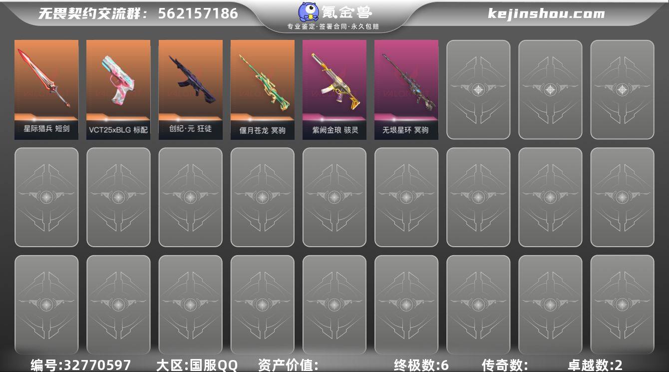 【PTWW3418】终极*6/卓越*2/皮肤*31/等级*50/段位:未定级/炼狱/钛狐/壹决/捷风/雷兹/幽影/不死鸟/贤者/猎枭/奇乐/尚勃勒/夜露/黑梦/钢锁/近战武器-碎心裂刃/魄月玄刃/星际猎兵 短剑/狂徒-创·纪元/冥驹-偃月苍龙/冥驹-无垠星环/骇灵-紫阙金琅/标配-VCT25xBLG/树懒大作战 卡面/Clutch 卡面/无畏契约GO!第一卷:零 卡面/无垠星环 卡面/《双城之战》金克丝 卡面/钢锁vs盖可 卡面/代号红色 卡面/新兵报到 卡面/V契约 卡面/无畏契约 卡面/买装还是存钱 喷漆/放下武器 喷漆/红牌退场 喷漆/胜利属于无畏契约 喷漆/GLHF 喷漆/无畏契约 喷漆/动力机箱 挂饰/天外飞客 挂饰/无畏契约 纪念币 挂饰
