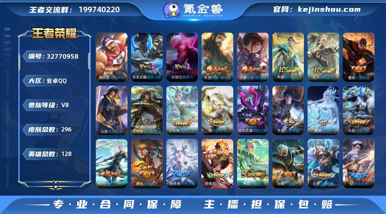 AHC50406,,,,,,小魔方--大国钟馗15053--小国亚瑟11323--小国苏烈13670--小国张飞--13471--对抗路64段--11万战金标--3星传说--15按键--钱包实名未注销,,,,,安卓Q-V8-最强王者段位-128英雄-296皮肤-1典藏皮肤-25传说-95史诗 【英雄全皮】:元歌全皮,孙权全皮,敖隐全皮,蒙恬全皮,空空儿全皮,影全皮 【荣耀典藏】:程咬金活力突击 【传说皮肤】:云缨神骥越千峰,关羽神骥镇沧海,杨戬纵目迁山,后羿神树通天,曹操万灵伏威,元歌诡秘之主,大司命死亡执政官,公孙离云诺千山,裴擒虎祥瑞亨通,桑启鸣野蒿,典韦战鼓燎原,赵云乘龙铭钟鼎,铠琥珀纪元,露娜霜月吟,吕布怒海麟威,马超无双飞将,孙策末日机甲,孙尚香异界灵契,赵云淬星耀世,镜炽阳神光,虞姬启明星使,李信一念神魔,张良黄金白羊座,宫本武藏地狱之眼,孙悟空地狱火 【限定皮肤】:暃埋骨钱,狄仁杰阴阳师,赵云皇家上将,赵云引擎之心,孙尚香异界灵契,庄周高山流水,高渐离玩趣恶龙,钟无艳超时空战士,扁鹊奇幻香踪,元歌云间偶戏,元歌无心,甄姬落雪兰心,狄仁杰魔术师,狄仁杰万华元夜,达摩星际陆战队,项羽海滩派对,程咬金演武夺筹,兰陵王金庭之子,亚瑟潮玩骑士王,孙悟空至尊宝,...