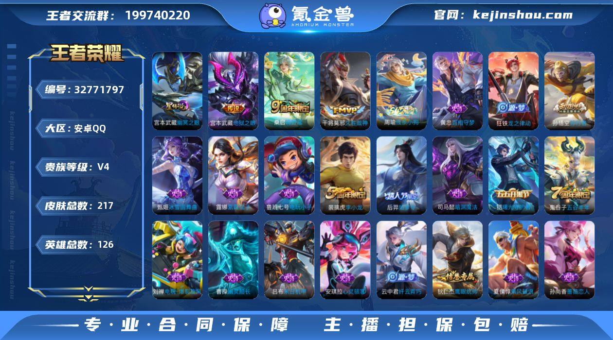 AHC90007,,,,,,安卓Q-V4-至尊星耀II段位-126英雄-217皮肤-3传说-48史诗 【传说皮肤】:桑启鸣野蒿,干将莫邪久胜战神,宫本武藏地狱之眼 【限定皮肤】:白起狰,姜子牙天穹之誓,狄仁杰阴阳师,虞姬凯尔特女王,孙尚香蔷薇恋人,庄周高山流水,高渐离玩趣恶龙,孙膑妖精王,扁鹊炼金王,夏侯惇朔风刀,曹操烛龙,狄仁杰万华元夜,达摩沙漠行僧,项羽海滩派对,老夫子醍醐杖,程咬金演武夺筹,兰陵王金庭之子,孙悟空孙行者,牛魔御旌,后羿如梦令,李元芳云中旅人,钟馗驱傩正仪,杨玉环遇见飞天,干将莫邪胡桃夹子,雅典娜黎明之约,太乙真人饕餮,鬼谷子原初探秘者,鬼谷子五谷丰年,苏烈千军破阵,百里玄策原初追逐者,弈星混沌棋,梦奇顽趣,沈梦溪大漠名商,明世隐疑决卦,裴擒虎李小龙,裴擒虎擒涛扼浪,狂铁御狮,米莱狄御霄,云中君纤云弄巧,盾山御銮,上官婉儿梁祝,鲁班大师探海日志,桑启海盐诗旅,阿古朵江河有灵,张良古海寻踪,蒙恬荣光圣徽,鬼谷子天穹祈灯,沈梦溪龙舞盛年,刘邦剑破天穹,程咬金群星魔术团,周瑜熔金海岸 【赛季限定】:孙膑妖精王,扁鹊炼金王,虞姬凯尔特女王,白起狰,太乙真人饕餮,曹操烛龙,狂铁御狮,米莱狄御霄,牛魔御旌,...
