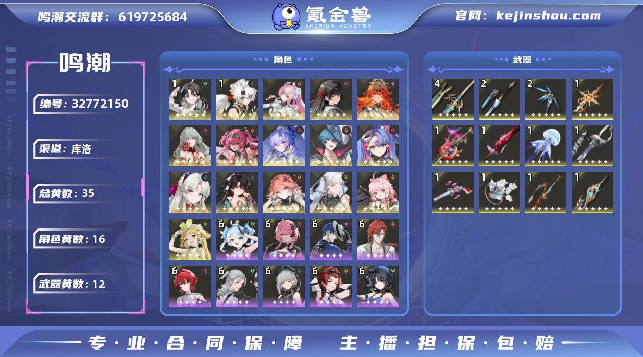 84鸣潮41金21up三皮肤欧皇号可议价4.3号下午4点30可换绑,找回包赔,41个金,21个up,卡池已垫,柯莱塔今汐还有散华皮肤21个up和9专武,角色卡池保底13带4,武器55,欧皇爆炸号,很多东西没领,高练度,低探索,基本上都是毕业,其他的也有五星武器,可以议价借:鸣潮,官服,成品,初始,回收,长离,今汐,忌炎,吟霖,卡卡罗,奶妈,专武,欧皇,极品,低价,特价 全女 师徒 龙凤蝶花01今汐 01今夕 0命今夕 一命今汐,01卡提,卡提西亚,日月,仇远,千咲,尤诺,卡提,满命,露帕,桃夭灼灼 夏日旖旎 桂枝宁芙,泳装皮肤,琳奈,莫宁,爱弥斯,满命爱弥斯