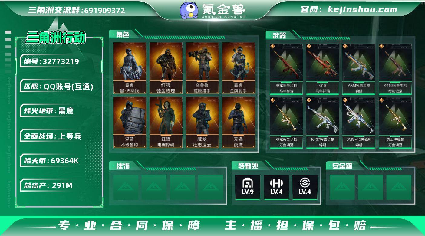 【SJZD2837】总资产(M):291M/哈夫币(K):69364K/哈夫币(K):69364K/传说枪皮数:40/全面战场等级:24_段位:上等兵/烽火地带等级:60_段位:黑鹰/红狼-蚀金玫瑰/露娜-黑·天际线/威龙-壮志凌云(S3)/蜂医-送葬人·无题密令(S5)/无名-夜鹰(S4)/深蓝-不破誓约(S6)/红狼-电锯惊魂/露娜-金牌射手(S7)/乌鲁鲁-荒原猎手/近战-处刑者4级/近战-黑鹰/M4A1突击步枪-蚀金玫瑰/M4A1突击步枪-阿米娅/AKM突击步枪-锦绣/K416突击步枪-行动记录/AUG突击步枪-悠然茶歇/M7战斗步枪-零度协议/SG552突击步枪-运动员/AK-12突击步枪-夜鹰/AK-12突击步枪-特斯拉线圈/SCAR-H战斗步枪-铁艺苍穹/SCAR-H战斗步枪-启航/CAR-15突击步枪-黑鹰坠落/CAR-15突击步枪-阿米娅/腾龙突击步枪-捞点薯条/腾龙突击步枪-马年祥瑞/腾龙突击步枪-万金泪冠/K437突击步枪-锦绣/KC17突击步枪-电锯惊魂/MK47突击步枪-悠然茶歇/UZI冲锋枪-特斯拉线圈/UZI冲锋枪-悠然茶歇/SMG45冲锋枪-骑士/SMG-45冲锋枪-锦绣/SR-3M紧凑突击步枪-特斯拉线圈/勇士冲锋枪-能天使-午夜邮差/勇士冲锋枪-万金泪冠/725双管霰弹枪-送葬人-无题密令/M250通用机枪-骑士之心/M14射手步枪-电锯惊魂/M14射手步枪-蛮荒/M14射手步枪-缄花/SKS射手步枪-骑士/SR-25...