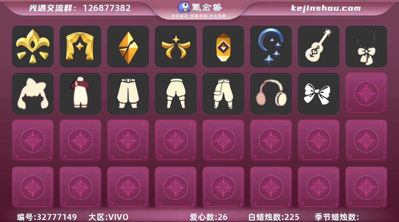 vivo渠道八季0号白枭蝙蝠斗武士裤 身高0.91-12.91 当前1.33 蜡烛数量:225 翼数量:160 爱心:26 已经毕业地图:晨岛,云野,雨林,霞谷,暮土,禁阁 已经毕业季节:夜行季,追忆季,欧若拉季,破晓季,表演季,集结季,梦想季 稀有礼包:圣诞鹿角,南瓜头,玉兔,大桔大利,年年有余,创始人礼包,蝙蝠斗篷,雏鸟之琴,音韵吉他,祥云瑞气纸伞,情人秋千,茶桌 热门物品:蝴蝶结,公主头,正太头,樱花头,猫猫头,搓澡巾,武士裤,白棉裤,背带裤,花环头饰,宴会围巾,虚荣发型,红耳机,红狐狸面具,红金斗篷,白金斗篷,白鸟斗篷,吉他,笛子,排箫,铃铛,雨伞