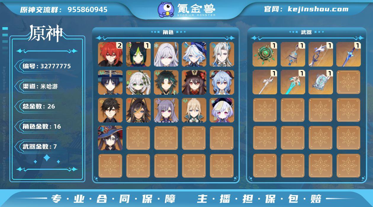 55级/26黄/男主/16个五星角色/7个五星武器 0命芙宁娜,0命那维莱特,0命迪希雅,0命流浪者,0命纳西妲,1命提纳里,0命钟离,0命胡桃,0命甘雨,0命魈,0命刻晴,0命七七,0命琴,0命莫娜,2命迪卢克,0命丝柯克,精1碧落之珑,精1图莱杜拉的回忆,精1若水,精1波乱月白经津,精1四风原典,精1天空之刃,精1风鹰剑