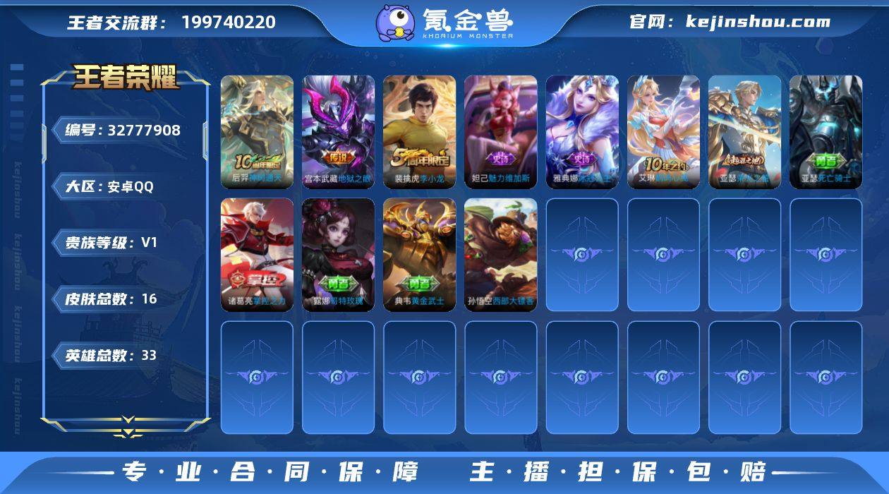 【地狱之眼 2传说可秒换绑】安卓QQ-33英雄-16皮肤【传说皮肤】神树通天 地狱之眼【史诗皮肤】魅力维加斯 李小龙 冰冠公主【勇者皮肤】鹤鸣心笺 荣光之誓 哥特玫瑰 死亡骑士 掌控之力 西部大镖客 黄金武士 营地ID:1502665394