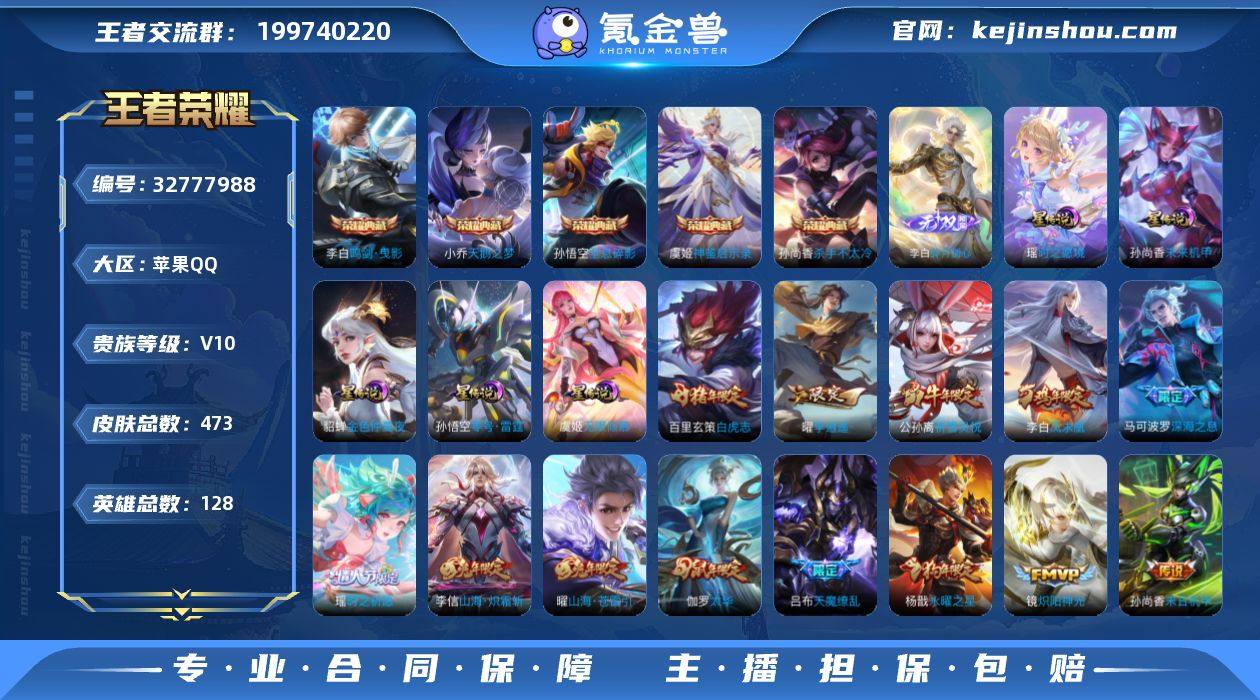 小国马超·1.1w小国诸葛亮·万战小国李白·打野53段·6典藏·1无双·5星传说·64传说·碎月剑心·无限倾慕·紫瑶·满牛年限定·满虎年限定·满兔年限定·绝版梅西·瑶时之祈愿·李逍遥·白虎志·永曜之星·天魔缭乱·可二次】w21750-苹果Q-128英雄-473皮肤-28王者印记-300铭文-贵族积分25w【贵族10】【v10·6典藏·1无双·5星传说·64传说·1天幕·63按键·7个性戳戳】【因赛季更新游戏段付以上号为准!】 【英雄全皮】:刘邦全皮,孙权全皮,娜可露露全皮,橘右京全皮,猪八戒全皮,敖隐全皮,鲁班大师全皮,金蝉全皮,戈娅全皮 【荣耀典藏】:孙悟空全息碎影,小乔天鹅之梦,孙尚香杀手不太冷,李白鸣剑曳影,花木兰九霄神辉,虞姬神鉴启示录 【无双皮肤】:李白碎月剑心 【星元皮肤】:貂蝉金色仲夏夜,孙尚香未来机甲,孙悟空零号雷霆,瑶时之愿境,虞姬无限倾慕 【天幕】:共赏芳华天幕 【传说皮肤】:后羿神树通天,桑启鸣野蒿,艾琳觅芳踪,诸葛亮鹤羽星尊,澜电玩雷克斯,张飞百相守梦,干将莫邪画中仙,花木兰燃星之曲,虞姬无限倾心,项羽无限倾心,伽罗炽翼辉光,孙悟空齐天大圣,小乔山海琳琅生,曜山海苍雷引,李信山海炽霜斩,吕布怒海麟威,李白诗剑行,狄仁杰神器狴犴令,百里守约碎云,橘...