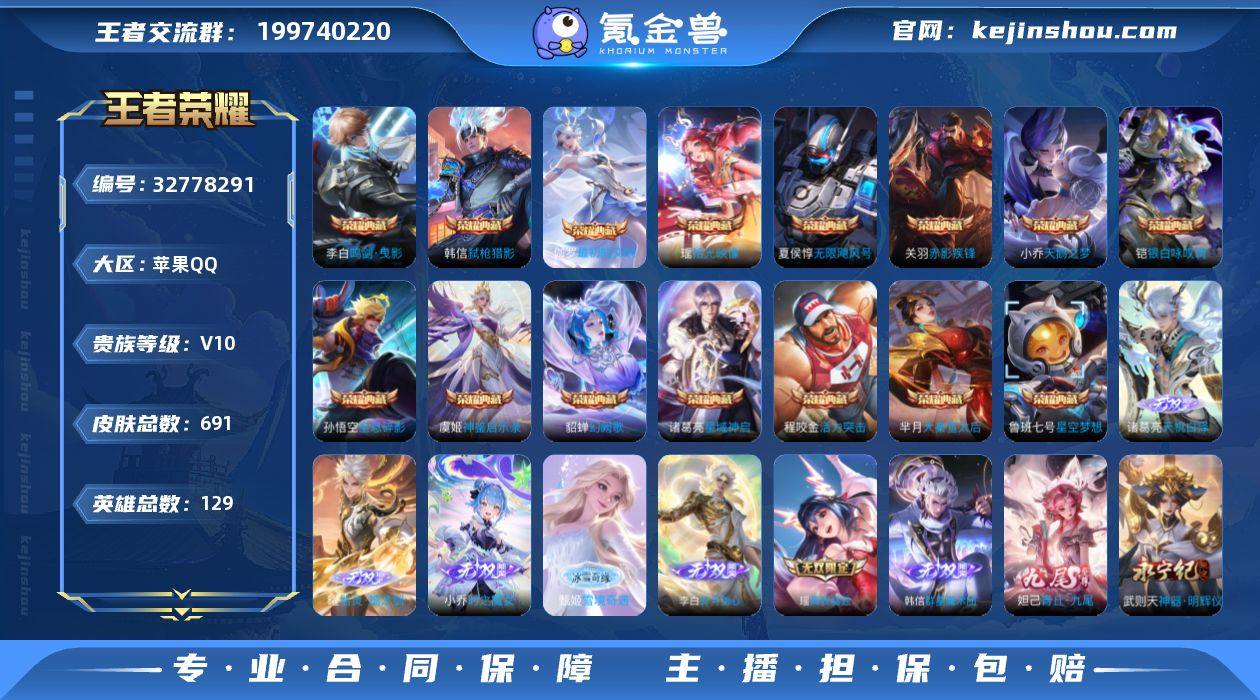 【极品女号v10·17典藏·10无双·7珍品·10星传说·106传说·7精品天幕·1小兵·4.7W流光积分·福星装扮·全皮瑶·全皮小乔·全皮妲己·全皮杨玉环·全皮大乔·全皮西施·全皮海月·全皮鲁班七号·紫悦宝灵宝·3W亲密度·满蛇年限定·满牛年限定·满兔年限定·满龙年限定·可二次】w21927-苹果Q-129英雄-691皮肤-27王者印记-300铭文-贵族积分60w【贵族10】【v10·17典藏·10无双·7珍品·10星传说·106传说·8天幕·51按键·113个性戳戳】【因赛季更新游戏段付以上号为准!】 【英雄全皮】:廉颇全皮,小乔全皮,赵云全皮,墨子全皮,妲己全皮,嬴政全皮,鲁班七号全皮,庄周全皮,刘禅全皮,孙膑全皮,扁鹊全皮,项羽全皮,程咬金全皮,姜子牙全皮,刘邦全皮,孙权全皮,兰陵王全皮,艾琳全皮,娜可露露全皮,橘右京全皮,刘备全皮,张飞全皮,虞姬全皮,钟馗全皮,杨玉环全皮,苍全皮,女娲全皮,哪吒全皮,诸葛亮全皮,大乔全皮,黄忠全皮,苏烈全皮,百里玄策全皮,百里守约全皮,沈梦溪全皮,狂铁全皮,瑶全皮,云中君全皮,盾山全皮,猪八戒全皮,上官婉儿全皮,敖隐全皮,海月全皮,曜全皮,西施全皮,蒙犽全皮,鲁班大师全皮,阿古朵全皮,夏洛特全皮,司空震全皮,金蝉全皮,莱西奥全皮,戈娅全皮,空...