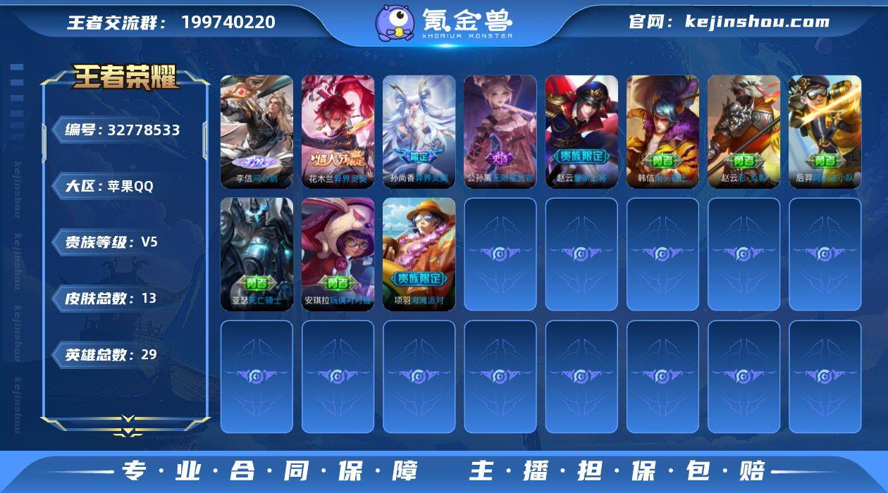 【1无双问心剑2传说 秒换绑不用等】苹果QQ-29英雄-13皮肤【无双皮肤】问心剑【传说皮肤】异界灵契 异界灵契【史诗皮肤】无限星赏官 皇家上将【勇者皮肤】线条小狗 街头霸王 阿尔法小队 海滩派对 死亡骑士 忍·炎影 玩偶对对碰 营地ID:1501562826