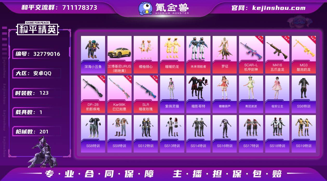 安卓 手Q-5粉装-6特效枪-1载具-0粉色飞行器-62453热力值-2王牌印记-123套装-201枪皮 【热门品类】:套装-深海小丑鱼,套装-暗影哥特 【粉色套装】:粉装-橘柚倾心,粉装-暖暖奶龙,粉装-未来领航者,角色-罗征,角色-虎痴许褚 【粉色枪皮等级】:SCAR-L-机甲封神(七级),M416-五爪金龙(七级),Kar98K-巳巳如意(三级),SLR-暗夜玫瑰(三级),DP-28-豹影疾电(三级),MG3-酷泡奶龙(七级) 【粉色载具】:兰博基尼URUS(明艳黄) 【粉色枪皮】:SCAR-L-机甲封神,M416-五爪金龙,Kar98K-巳巳如意,SLR-暗夜玫瑰,DP-28-豹影疾电,MG3-酷泡奶龙 【粉色降落伞】:绝对恒星降落伞,梦幻火箭降落伞,甜蜜誓约降落伞,四圣焕新降落伞,葫芦兄弟降落伞,蓝莓炮弹降落伞 【稀有套装】:套装-雪国风尚,套装-马上有钱,套装-糖糖葫芦,套装-青团波波,角色-临安公主,角色-紫俏灵猫,角色-孙斩天 【稀有枪皮】:AKM-彩虹符号,AKM-灼热熔岩,AKM-王牌投手,AKM-破晓战魂,AKM-筑梦精灵,AKM-萌趣颜团子,AKM-虎虎生威,M16A4-幻世战舞者,M16A4-甜心亚梦,M16A4-红色方程式,SCAR-L-炫彩节奏,SCAR-L-红色方程式,M416-夜灯,M416-糯团青竹,M416-红色方程式,M416-蓝色火焰,GROZA-异彩先驱...