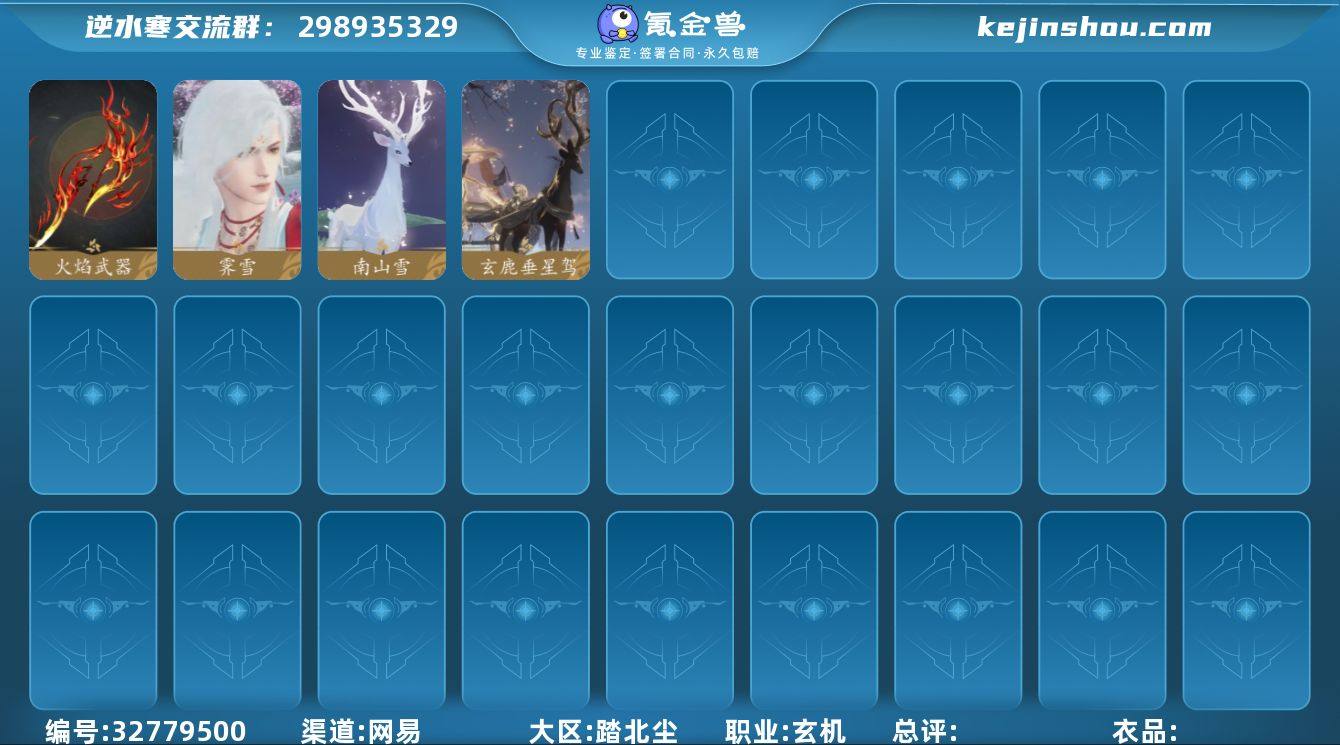 【天赏已用8-有转性单-转职卷-改名卡】战力值:778410 总评:778410 角色等级:89 衣品值: 172610 国色值: 19040 已用天赏石:8 【网易手机账号】 【无换绑冷却】 【玄机】 【男】 【5级】 【凭栏听雨】 【互通】 副本外观3 天赏外观2 天赏祥瑞2 武器环身3 副本外观:白夜拂雪,飞焰流波,星剑分野; 天赏外观:霁雪,火焰武器; 天赏祥瑞:玄鹿垂星驾,南山雪; 武器环身:玉壶乾坤,赤焰流光,天下不服;