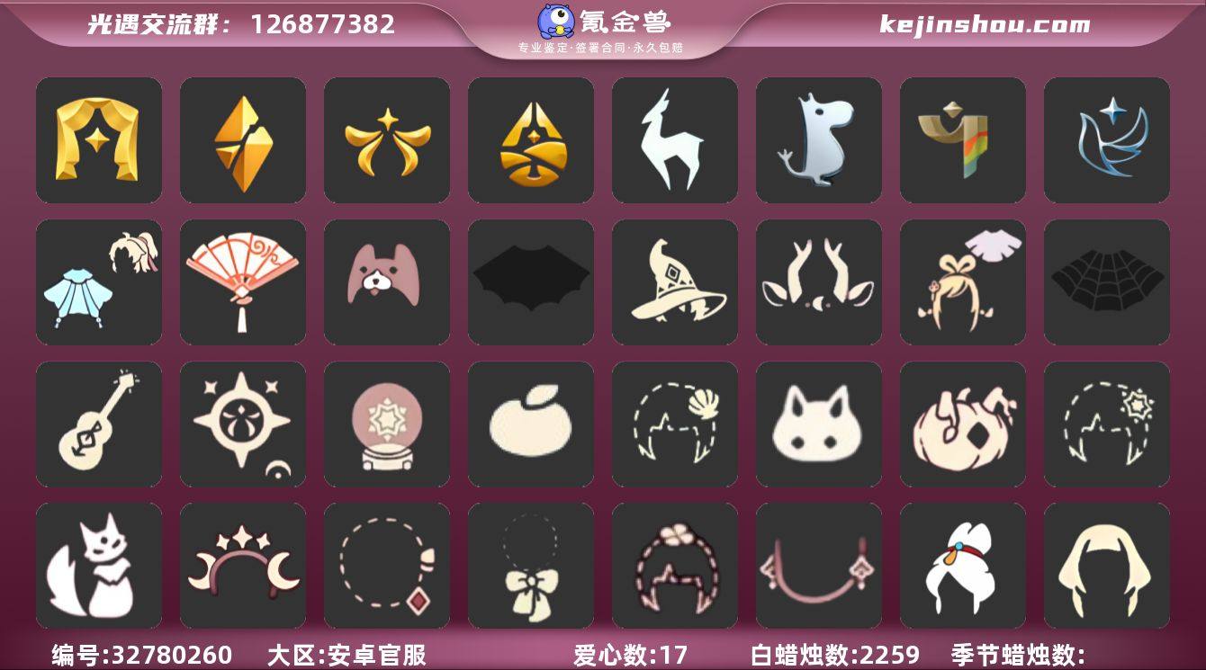 账号类型: 手机账号 季节已毕业: 表演季,破晓季,欧若拉季,归巢季,九色鹿季,姆明季,彩染季,青鸟季 完成地图: 云野,雨林,霞谷,暮土 珍稀物品: 白枭,透明蝶翼斗,彩虹围巾 礼包: 蝙蝠套,巫师,九色鹿角,绊爱,蜘蛛斗,吉他,人声乐器,雪花球,橘子,贝壳,兔子,南瓜,雪花,猫背饰,星月头饰,彩虹耳钉,蝴蝶结,四叶草,新年耳钉,献瑞折扇礼包,小狗周年发饰,青衫落拓礼包 裤子: 武士裤,搓澡巾,击剑裤,妮妮裙子,蓝绿裤,飞天裤,青鸟尊贵蓬头裤子 面具: 黄眉企鹅面具,辉光羚羊面具 面饰: 红耳机,黑框眼镜,青鸟毕业面饰 发型: 归巢毕业发型,若笠,虚荣,留辫蘑菇头,飞天盘发 头饰: 蓝色音乐会,平顶帽 斗篷: 海洋斗,绿芽,遥鲲斗篷,燕尾斗篷,冥龙斗篷,彩染围巾斗篷,青鸟毕业斗篷 配饰: 雨伞,高音钢琴,姆明抱枕,小红伞,相机,二重奏挂画 亮点: 【优质装备】:表演季,白枭(帝企鹅发),武士裤,青鸟尊贵蓬头裤子(蓝色燕尾服),破晓季,透明蝶翼斗,欧若拉季(欧若拉),归巢毕业发型(五塑彩羽发),高音钢琴(白色高脚钢琴),妮妮裙子(妮妮长裙),姆明抱枕,小红伞(姆明红伞)(姆明大伞),相机(季卡相机),彩虹围巾(五塑彩带斗),归巢季,九色鹿(九色鹿季),蓝绿裤(高领舞服),飞天裤(柔缎花边连)(九色鹿丝带裤),二重奏挂画(合奏挂...