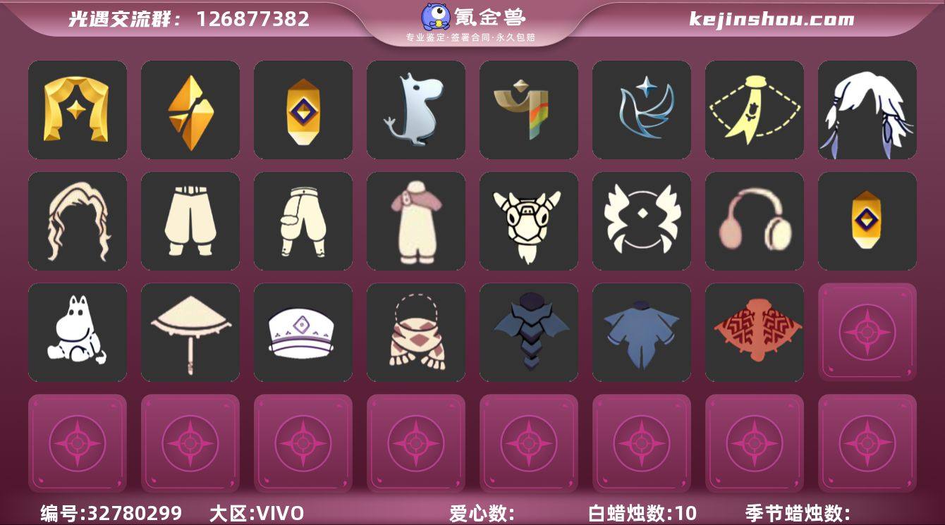 【礼包】新年裤(瑞气服饰),向日葵连衣裙(连衣裙),水母(水母肩饰),活力海牛礼包,彩虹帽(多彩绒帽),巫师(巫师帽),绊爱(绊爱斗篷)(绊爱礼包),兔子(玉兔头饰)(玉兔发饰)(兔子发饰),彩虹耳钉(彩虹耳饰),围巾(小王子斗篷)(小王子围巾),蝙蝠套(蝙蝠斗篷)(南瓜头),蜘蛛斗(蛛丝斗篷)(蛛网斗篷),小提琴(凯旋提琴),献瑞折扇礼包,猫背饰(猫咪背饰)