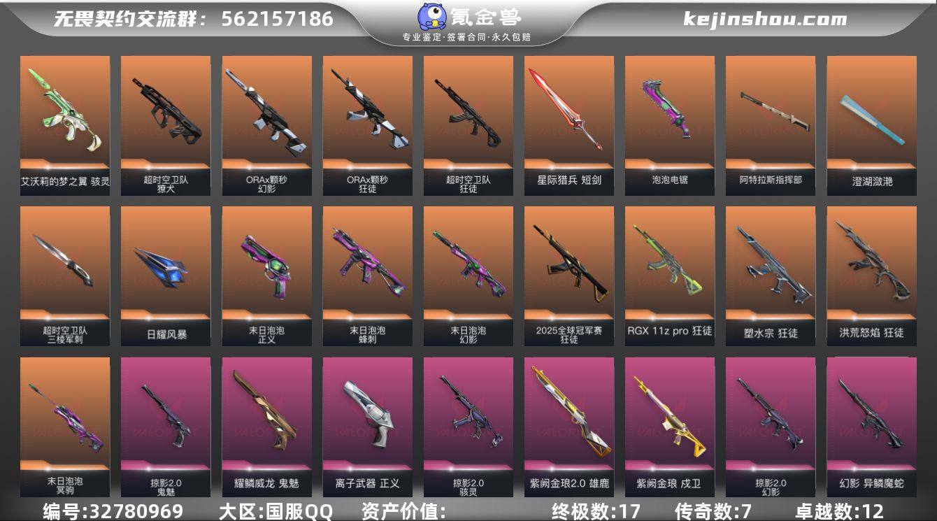 【942194】[17999655]17橙皮 7金皮 12紫皮 94皮肤 25英雄 94卡面 920已用源晶 神话段位 【套装】末日泡泡套装,掠影2.0套装,超时空卫队 【近战武器皮肤】镭切,碎心裂刃,日耀风暴 遗器,超时空卫队 三棱军刺,阿特拉斯指挥部,影钩,泡泡电锯,星际猎兵 短剑,澄湖潋滟 【佩枪皮肤】鬼魅-超时空卫队,鬼魅-掠影2.0,正义-末日泡泡,超集系统 标配,风暴之子 正义,正义-离子武器,鬼魅-耀鳞威龙 【冲锋枪皮肤】骇灵-艾沃莉的梦之翼,骇灵-掠影2.0,蜂刺-末日泡泡,蒙太奇 骇灵 【霰弹枪皮肤】雄鹿-紫阙金琅2.0,风暴之子 雄鹿 【步枪皮肤】幻影-异鳞魔蛇,幻影-ORAx颗秒,风暴之子 戍卫,蒙太奇 幻影,超集系统 狂徒,狂徒-ORAx颗秒,2025全球冠军赛 狂徒,幻影-末日泡泡,幻影-掠影2.0,獠犬-超时空卫队,狂徒-超时空卫队,狂徒-RGX 11z pro,狂徒-洪荒怒焰,狂徒-塑水宗,狂徒-盖亚的复仇,戍卫-紫阙金琅 【狙击枪皮肤】莽侠-超时空卫队,冥驹-末日泡泡,风暴之子 冥驹,超集系统 飞将,飞将-天界神兵,冥驹-堕天遗武 【机枪皮肤】蒙太奇 战神,奥丁-掠影2.0 【挂饰】末日泡泡挂饰,V25第六幕:神话 挂饰,风暴之子 挂饰,V26第一幕纪念币 挂饰,协议假人 挂饰,超集系统 挂饰,H2-Oh!挂饰,超时空卫队挂饰,达摩娃娃挂饰,...