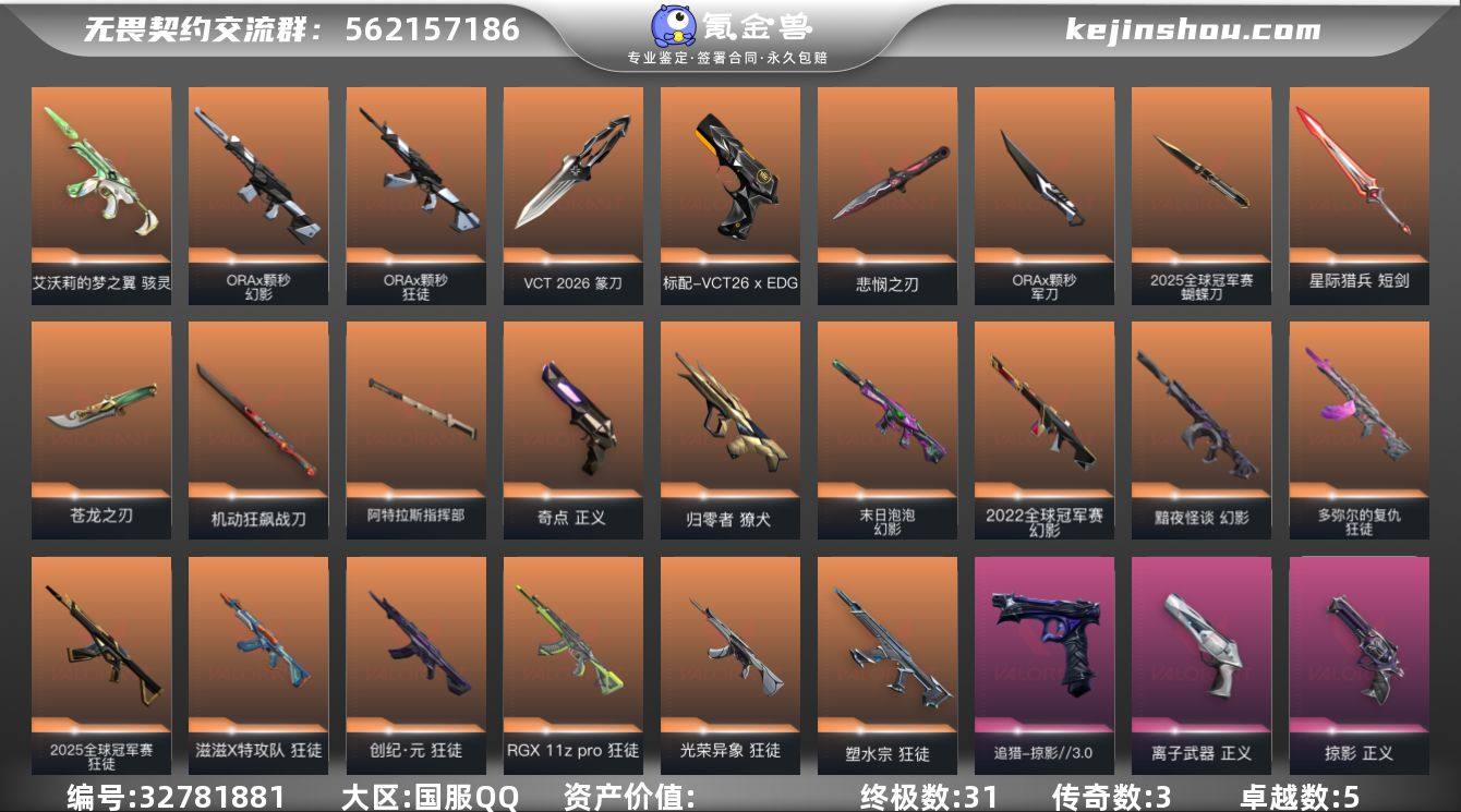 L2994 【性价比】vct26篆刀 离子正义 掠夺3.0套 vct26edg标配 怜悯之刃 流风回雪 颗秒幻影 颗秒狂徒 颗秒军刀 落英飞旋 多弥尔狂徒 奇点正义 镭切 机动战刀 25套 黯夜幻影 黑波之刃 泡泡幻影 紫金爪刀 滋滋狂徒 创纪元狂徒 塑水狂徒 穿花蝴蝶 掠夺爪刀 盖亚狂徒 掠夺正义 猫猫骇灵 光荣异象狂徒 天界戍卫 归零獠犬 5周年刀 22幻影库存: 80610剩余VP:89剩余R点:35 段位:黄金