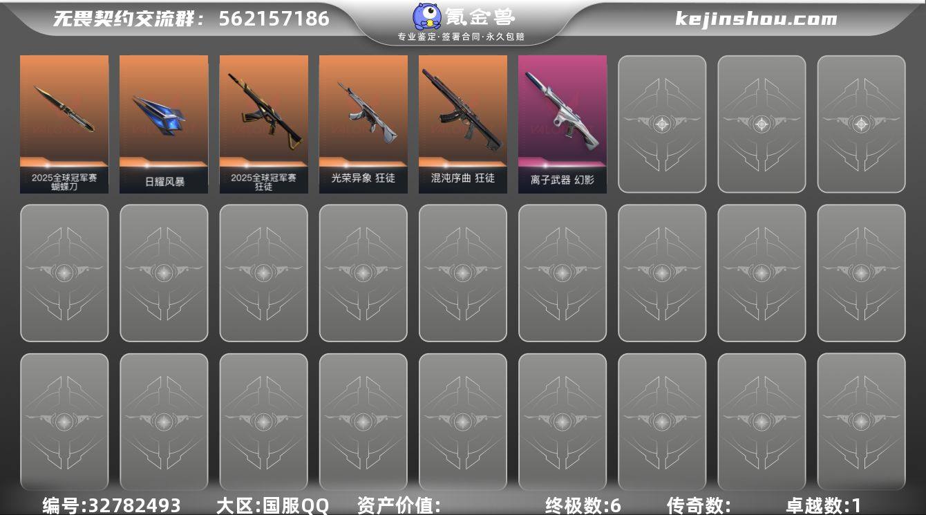 【943418】【套装】:2025全球冠军赛套装 【英雄】:炼狱,维斯,暮蝶,钛狐,壹决,铁臂,捷风,雷兹,幽影,不死鸟,贤者,猎枭,零,芮娜,尚勃勒,霓虹,斯凯,夜露,K/O,盖可,黑梦,钢锁 【近战武器】:近战武器-2025全球冠军赛 蝴蝶刀,近战武器-黑波之刃,近战武器-日耀风暴 遗器 【狂徒】:狂徒-2025全球冠军赛,狂徒-混沌序曲,狂徒-光荣异象 【幻影】:幻影-离子武器 【骇灵】:骇灵-无限竞技 【卡面】:树懒大作战 卡面,红鳞松叶 卡面,Clutch 卡面,无畏契约GO!第一卷:芮娜 卡面,无畏契约GO!第一卷:零 卡面,《双城之战》金克丝 卡面,没有什么能逃过我的眼睛 卡面,钢锁vs盖可 卡面,别冒尖 卡面,代号红色 卡面,新兵报到 卡面,V契约 卡面,无畏契约 卡面 【喷漆】:买装还是存钱 喷漆,暴走萝莉 喷漆,胜利属于无畏契约 喷漆,GLHF 喷漆,无畏契约 喷漆 【挂饰】:天外飞客 挂饰,红鳞松叶 挂饰,无畏契约 纪念币 挂饰