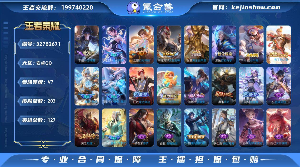 V7 10传说 127英雄 203皮肤 可修改实名 【英雄全皮】蚩奼全皮,大禹全皮 【稀有英雄】大司命,敖隐(小龙人),夏洛特(夏师傅),金蝉(唐僧),戈娅,赵云,韩信(韩跳跳),艾琳,不知火舞,娜可露露(鸟人),橘右京(橘子) 【传说皮】久胜战神,一念神魔,鲁班七号-时之奇旅,星之鸣奏,黄金白羊座,幻光神枪 【珍宝阁皮】妄想食味 【赛季/战令皮】夺宝奇兵,醍醐杖(s20),迷踪丽影,星空之诺,星际陆战队-达摩,赤莲之焰,云间偶戏,噬灭天穹(s37),疑决卦(s19),狂想玩偶喵,暗影游猎(游乐娃子),原初探秘者(s21),潮玩骑士王,西部大镖客-猪八戒,万华元夜(s22),演武夺筹(s23),银河之约,混沌棋(s18),御霄(s14),胡桃异想国,神迹守卫-钟馗,驱傩正仪(s24) 【史诗皮】乘风破浪,藏狐·褐绒,化蝶舞,曙光守护者,线条小狗-小乔,幽灵船长,地狱岩魂,茶境仙,缤纷独角兽,猫狗日记-孙策,水果甜心,小牛鸭,器灵·浮梦炉,紫霞仙子,末日机甲-吕布,百相守梦-周瑜,线条小狗-周瑜,黄金分割率,鸭鸭历险记-刘禅,天才门将,无限星赏官,糖绘人间,暗隐猎兽者,圣诞恋歌,狼魂孤将,千年之狐,布丁狗之誓,星夜王子,苍鳞隐世,绮世丹青,鹰眼统帅,瑰影绮梦,功夫厨神,光弋星穹,未来纪元-赵云,纤云弄巧,百相守梦-百里守约,雪豹·霜爪,逐浪之夏,金...