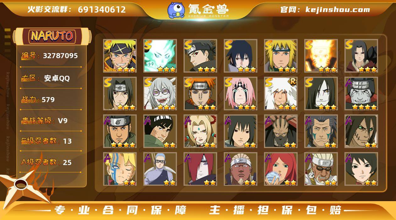 【1974】(可免费转苹果)v9,579w战力,13S级忍者数-25A级忍者数,天道超61片,传说自来也78片,秽土解斑46片,68高招券。ME2108 【S级忍者】:宇智波鼬「秽土转生」(3星),春野樱「忍界大战」(3星),宇智波鼬「须佐能乎」(3星),宇智波止水「须佐能乎」(3星),自来也「舞之豪杰」(3星),大蛇丸(3星),波风水门(3星),药师兜「仙人模式」(3星),漩涡鸣人「九喇嘛连结」(3星),佩恩「天道」(3星),宇智波佐助「永恒万花筒」(3星),大筒木舍人「最终章」(3星),漩涡鸣人·宇智波佐助(3星) 【A级忍者】:艾「青年」(2星),长门「青年」(2星),迪达拉「秽土转生」(2星),奇拉比「忍界大战」(2星),飞段(2星),飞段「死司凭血」(2星),干柿鬼鲛(4星),漩涡博人「桃式显现」(2星),漩涡鸣人「九尾查克拉」(2星),迈特凯(2星),我爱罗「疾风传」(2星),蝎(2星),蝎「绯流琥」(2星),角都「秽土转生」(2星),猿飞阿斯玛(4星),宇智波佐助「须佐能乎」(2星),长十郎「六代目水影」(2星),黑土「博人传」(2星),秋道丁次「忍界大战」(2星),千代「近松十人卫」(2星),不风(2星),宇智波泉奈(2星),不动(2星),纲手「妖怪奇谭」(2星),迈特凯「青春爆炸」(2星)