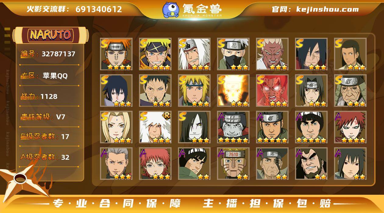 【2026】V7 1128万战力 17S-32A 日斩52片 LL5835 【S级忍者】:猿飞日斩「秽土转生」(3星),宇智波斑「秽土转生·解」(3星),宇智波带土「忍界大战」(3星),艾「忍界大战」(3星),宇智波鼬「须佐能乎」(3星),旗木卡卡西「须佐能乎」(3星),千手柱间「木叶创立」(3星),自来也「舞之豪杰」(3星),大蛇丸(3星),自来也「传说中的三忍」(3星),纲手(3星),波风水门(3星),漩涡鸣人「九喇嘛连结」(3星),迈特凯「死门」(3星),佩恩「天道」(4星),宇智波佐助「永恒万花筒」(3星),漩涡鸣人·宇智波佐助(3星) 【A级忍者】:艾「青年」(2星),长门「青年」(2星),波风水门「青年」(2星),达鲁伊「博人传」(2星),迪达拉(2星),奇拉比(2星),飞段(3星),飞段「死司凭血」(2星),干柿鬼鲛(5星),漩涡博人「桃式显现」(2星),机械鸣人「初始形态」(2星),迈特凯(5星),我爱罗「疾风传」(4星),蝎(3星),蝎「绯流琥」(2星),小南(2星),猿飞阿斯玛(5星),宇智波鼬(2星),宇智波佐助「须佐能乎」(2星),宇智波佐助「万花筒写轮眼」(2星),日向宁次「忍界大战」(2星),日向雏田「最终章」(2星),长十郎「六代目水影」(2星),李洛克「忍界大战」(2星),黑土「博人传」(2星),秋道丁次「忍界...