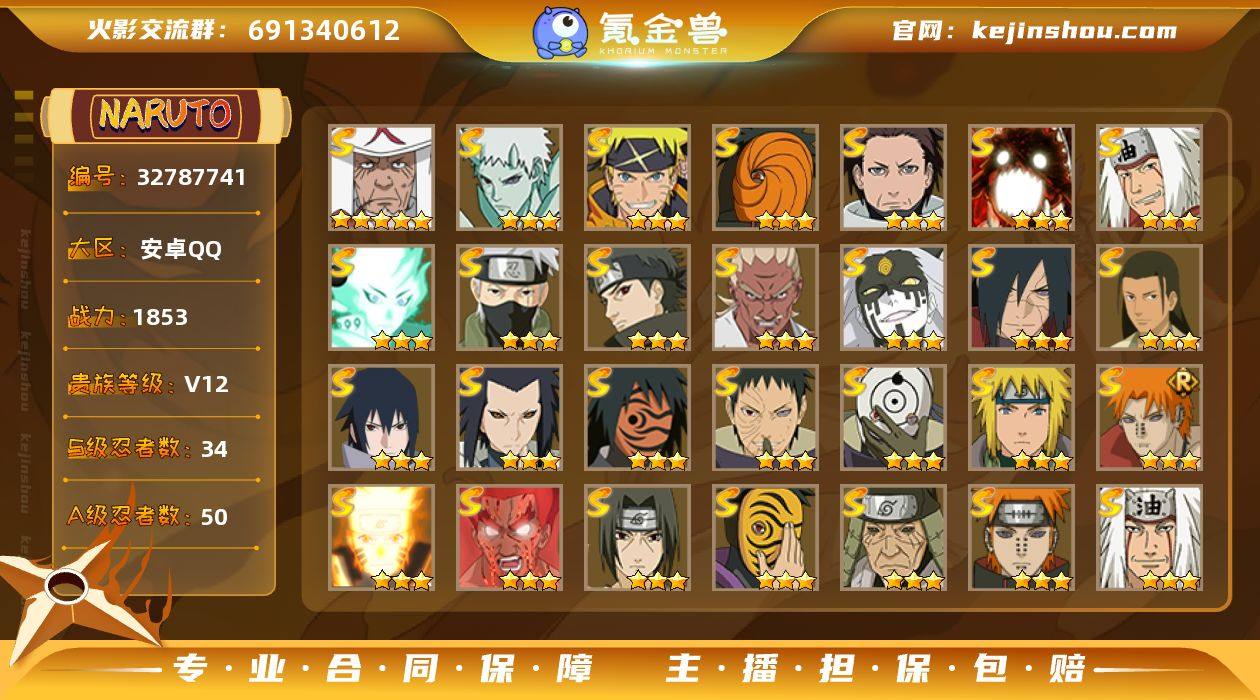 【2474】(可免费转苹果)V12,34S,50A,1853万战力,1.7万金币,262高招卷,已购忍法帖,有熊猫(王者连体225皮肤,17传说,1典藏),热门A元气卡卡西,面麻,最终章雏田,新春止水,新春小南,侠隐纲手,忍战我爱罗,漂泊小南,侠隐照美冥,暴怒带土。S碎片斑74片,神驹斑70片,YY2030 【S级忍者】:三代目风影「秽土转生」(3星),猿飞日斩「秽土转生」(3星),宇智波斑「秽土转生·解」(3星),春野樱「忍界大战」(3星),宇智波带土「忍界大战」(3星),艾「忍界大战」(3星),宇智波鼬「须佐能乎」(3星),宇智波止水「须佐能乎」(3星),旗木卡卡西「须佐能乎」(3星),千手柱间「木叶创立」(3星),烈斗「初代目风影」(3星),自来也(3星),自来也「仙人模式」(3星),自来也「舞之豪杰」(3星),大蛇丸(3星),自来也「传说中的三忍」(3星),纲手(3星),猿飞日斩(5星),波风水门(3星),神秘面具男(3星),神秘面具男「红夜之刃」(3星),漩涡鸣人「九喇嘛连结」(3星),迈特凯「死门」(3星),佩恩「天道」(3星),佩恩·天道「超」(3星),宇智波佐助「永恒万花筒」(3星),宇智波斑 「白面具」(3星宇智波斑「白面具」),大筒木金式(3星),大筒木桃式(3星),大筒木舍人「最终章」(3星),漩...