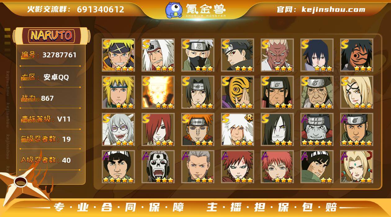 【2499】可免费转苹果 V11 867万战力 19S-40A 天道超45片 十尾带土86片 舍人80片 TT1840 【S级忍者】:长门「秽土转生」(3星),猿飞日斩「秽土转生」(3星),千手柱间「秽土转生」(3星),艾「忍界大战」(3星),宇智波鼬「须佐能乎」(3星),宇智波止水「须佐能乎」(3星),旗木卡卡西「须佐能乎」(3星),自来也「舞之豪杰」(3星),大蛇丸(3星),自来也「传说中的三忍」(3星),纲手「百豪」(3星),波风水门(3星),药师兜「仙人模式」(3星),神秘面具男(3星),神秘面具男「红夜之刃」(3星),漩涡鸣人「九喇嘛连结」(3星),佩恩「天道」(3星),宇智波佐助「永恒万花筒」(3星),漩涡鸣人·宇智波佐助(3星) 【A级忍者】:长门「青年」(2星),波风水门「青年」(2星),迪达拉(2星),迪达拉「秽土转生」(2星),奇拉比「忍界大战」(2星),飞段(3星),飞段「死司凭血」(3星),干柿鬼鲛(5星),漩涡博人「桃式显现」(2星),漩涡鸣人「仙人模式」(2星),机械鸣人「初始形态」(2星),迈特凯(5星),桃地再不斩「漂泊武士」(2星),我爱罗「疾风传」(3星),我爱罗「忍界大战」(2星),蝎(3星),蝎「绯流琥」(2星),小南(2星),小南「新春限定」(2星),小南「夏日泳装」(2星),角都「秽土转生」(2星)...