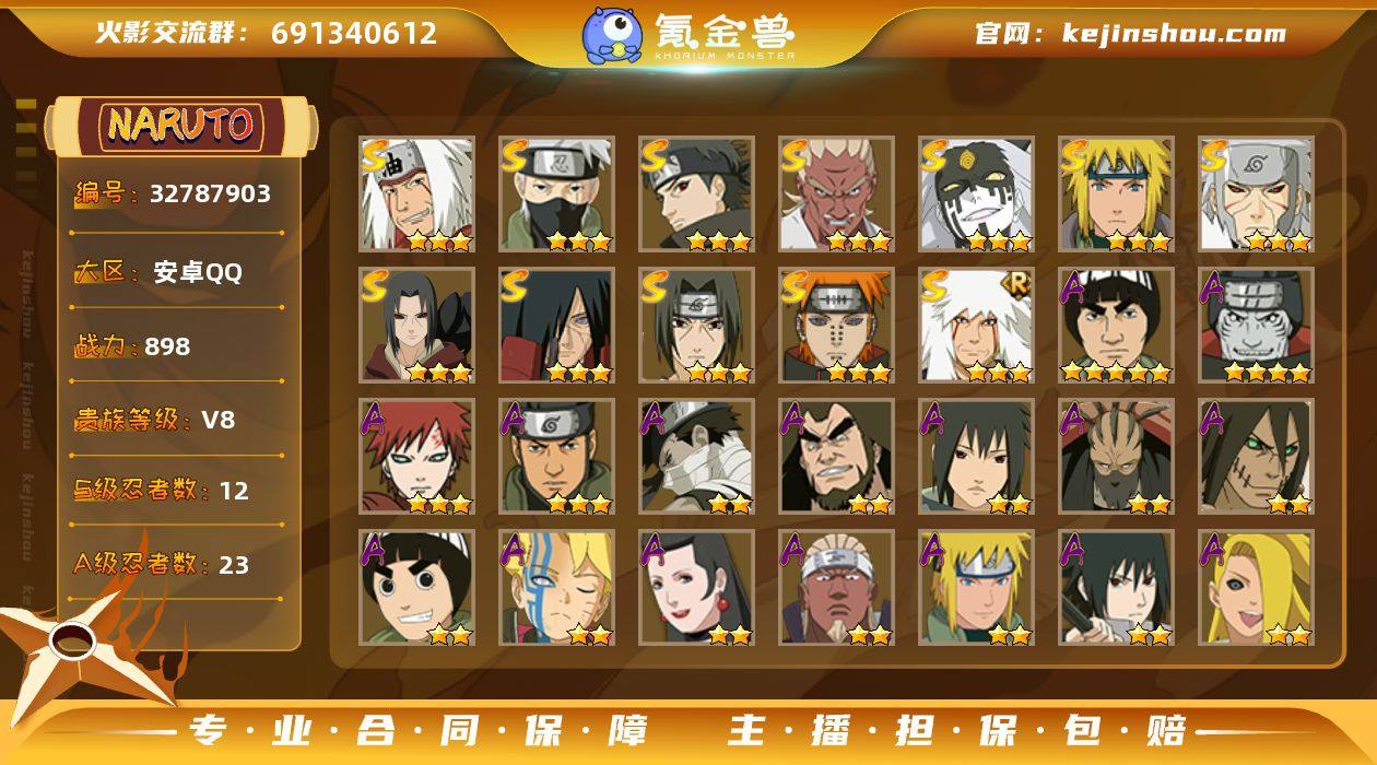 【2466】(可免费转苹果)V8,战力898W,12S级忍者数-23A级忍者数,31高招券,1307点券,日斩58片,最终章舍人75片。ME1725 【S级忍者】:千手扉间「秽土转生」(3星),宇智波鼬「秽土转生」(3星),宇智波斑「秽土转生」(3星),艾「忍界大战」(3星),宇智波鼬「须佐能乎」(3星),宇智波止水「须佐能乎」(3星),旗木卡卡西「须佐能乎」(3星),自来也「舞之豪杰」(3星),自来也「传说中的三忍」(3星),波风水门(3星),佩恩「天道」(3星),大筒木桃式(3星) 【A级忍者】:艾「青年」(2星),波风水门「青年」(2星),迪达拉(2星),迪达拉「秽土转生」(2星),飞段(2星),飞段「死司凭血」(2星),干柿鬼鲛(4星),漩涡博人「桃式显现」(2星),迈特凯(5星),桃地再不斩「秽土转生」(2星),我爱罗「疾风传」(3星),蝎(2星),蝎「绯流琥」(2星),角都「秽土转生」(2星),猿飞阿斯玛(3星),宇智波鼬(2星),宇智波佐助「须佐能乎」(2星),李洛克「忍界大战」(2星),秋道丁次「忍界大战」(2星),千代「近松十人卫」(2星),神农「羁绊」(2星),不缘(2星),宇智波泉奈(2星)