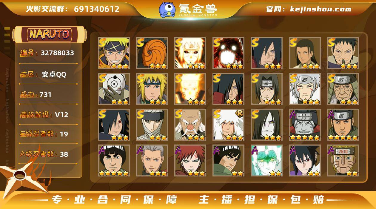 【2570】可免费转苹果 V12 731万战力 19S-38A 有熊猫 十尾带土60片 金式60片 TT1853 【S级忍者】:猿飞日斩「秽土转生」(3星),宇智波斑「秽土转生」(3星),宇智波斑「秽土转生·解」(3星),大野木「忍界大战」(3星),宇智波带土「忍界大战」(3星),宇智波鼬「须佐能乎」(3星),宇智波斑「木叶创立」(3星),千手柱间「木叶创立」(3星),无「二代目土影」(3星),自来也「舞之豪杰」(3星),大蛇丸(3星),千手扉间(3星),波风水门(3星),漩涡鸣人「九喇嘛连结」(3星),宇智波斑 「白面具」(3星宇智波斑「白面具」),漩涡鸣人「暴怒·第六尾」(3星),波风水门「九喇嘛连结」(3星),宇智波斑「五影会谈」(3星),漩涡鸣人·宇智波佐助(3星) 【A级忍者】:艾「青年」(2星),长门「青年」(2星),波风水门「青年」(2星),达鲁伊「博人传」(2星),迪达拉(2星),迪达拉「秽土转生」(2星),奇拉比(2星),飞段(3星),飞段「死司凭血」(2星),飞段「恶灵之影」(2星),干柿鬼鲛(5星),机械鸣人「初始形态」(2星),迈特凯(5星),迈特凯「忍界大战」(2星),旗木卡卡西「元气夏日」(2星),旗木卡卡西「幻之真容」(2星),桃地再不斩「漂泊武士」(2星),桃地再不斩「秽土转生」(2星),我爱罗「疾风传...