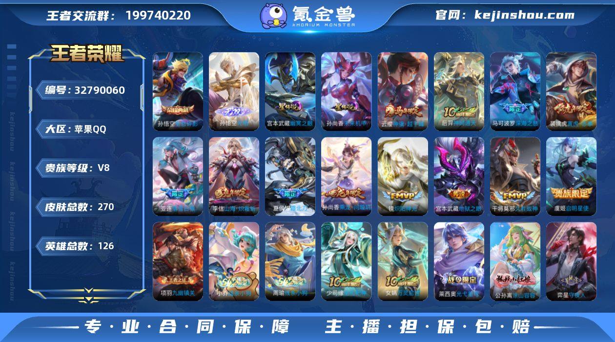 ky 金标孙悟空 苹果(q)区 270皮 1典藏 1无双 12传说 94限定 13王者印记 2星 亮点推荐:【全息碎影 无相 神骥·越千峰 寅虎·赤拳 乘龙·问璇玑 落雪白狼】道具内容:5按键