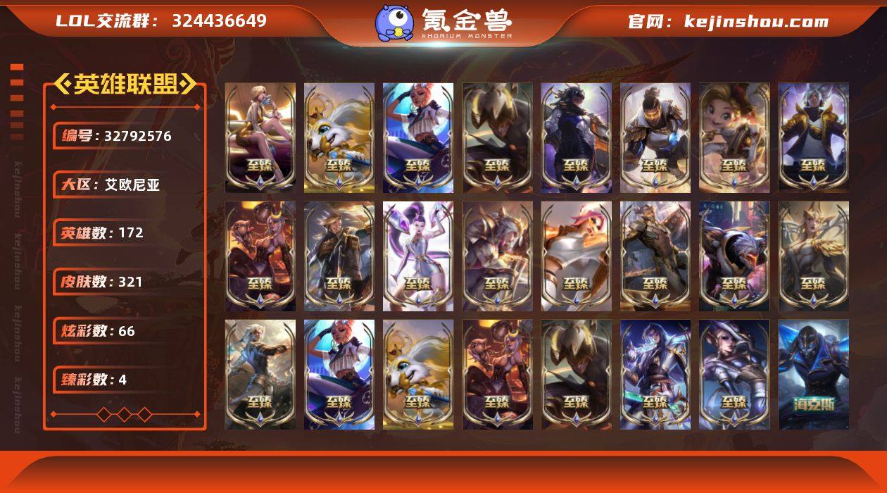【Hyx269】电信大区艾欧尼亚-段位铂金【172英雄-321皮肤-66炫彩-0终极-29神话-64限定-42传说-71史诗】优质皮肤:灰烬骑士莫德凯撒、新卧虎藏龙贾克斯、至臻魔女乐芙兰、至臻KDA伊芙琳、摄魂使者薇恩 【热门头像】:爱意绵绵头像,爱情之歌头像 【神话皮肤】:十五周年纪念希维尔,新卧虎藏龙贾克斯,神凰行者瑞羽圣凰艾尼维亚,灰烬骑士莫德凯撒 【至臻皮肤】:至臻魔女乐芙兰,至臻KDA伊芙琳,至臻西部魔影伊芙琳,至臻黑夜使者李青,至臻黑夜使者李青(2022),至臻烈焰美人薇恩,至臻烈焰美人薇恩(2022),至臻灵能特工伊泽瑞尔,至臻绒毛菲兹,至臻绒毛菲兹(2022),至臻福牛守护者菲奥娜,至臻女帝黛安娜,至臻黑夜使者凯隐,至臻奥术师佐伊,至臻KDAALLOUT卡莎,至臻真实伤害亚索,至臻真实伤害赛娜,至臻未来战士卢锡安,至臻源计划阴劫,至臻真实伤害奇亚娜,至臻真实伤害奇亚娜(2022),至臻源计划逆流塞拉斯,至臻心之钢永恩 【海克斯皮肤】:海克斯科技卡萨丁,摄魂使者薇恩 【臻彩皮肤】:幻灵战斗猫金克丝梦幻强袭,魔女阿卡丽虚荣,净雪之月莫甘娜冬虹 【年限皮肤】:神龙之翼库奇,广寒仙子嫦娥,美猴王孙悟空,玉净夜叉凯特琳,张辽文远,司马懿仲达,烈焰美人薇恩...