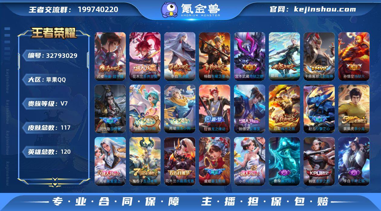 TD2632712无二次苹果Q-V7-最强王者段位-120英雄-117皮肤-8传说-29史诗 【传说皮肤】:云缨神骥越千峰,花木兰异界灵契,赵云乘龙铭钟鼎,干将莫邪久胜战神,杨戬永曜之星,李白凤求凰,宫本武藏地狱之眼,孙悟空地狱火 【限定皮肤】:白起狰,狄仁杰阴阳师,小乔纯白花嫁,虞姬凯尔特女王,赵云皇家上将,赵云引擎之心,庄周蜃楼王,高渐离死亡摇滚,孙膑妖精王,扁鹊炼金王,芈月重明,周瑜真爱至上,曹操烛龙,典韦穷奇,狄仁杰魔术师,狄仁杰万华元夜,达摩沙漠行僧,项羽海滩派对,项羽霸王别姬,程咬金演武夺筹,韩信逐梦之影,兰陵王金庭之子,孙悟空至尊宝,后羿辉光之辰,李元芳云中旅人,虞姬霸王别姬,钟馗驱傩正仪,杨戬永曜之星,太乙真人饕餮,鬼谷子原初探秘者,鬼谷子五谷丰年,苏烈千军破阵,弈星混沌棋,沈梦溪大漠名商,明世隐疑决卦,裴擒虎李小龙,桑启海盐诗旅,赵云乘龙铭钟鼎 【年限皮肤】:李白凤求凰,杨戬永曜之星,后羿辉光之辰,赵云乘龙铭钟鼎 【赛季限定】:庄周蜃楼王,孙膑妖精王,扁鹊炼金王,虞姬凯尔特女王,白起狰,太乙真人饕餮,曹操烛龙,芈月重明,典韦穷奇,弈星混沌棋,明世隐疑决卦,鬼谷子原初探秘者,狄仁杰万华元夜,程咬金演...