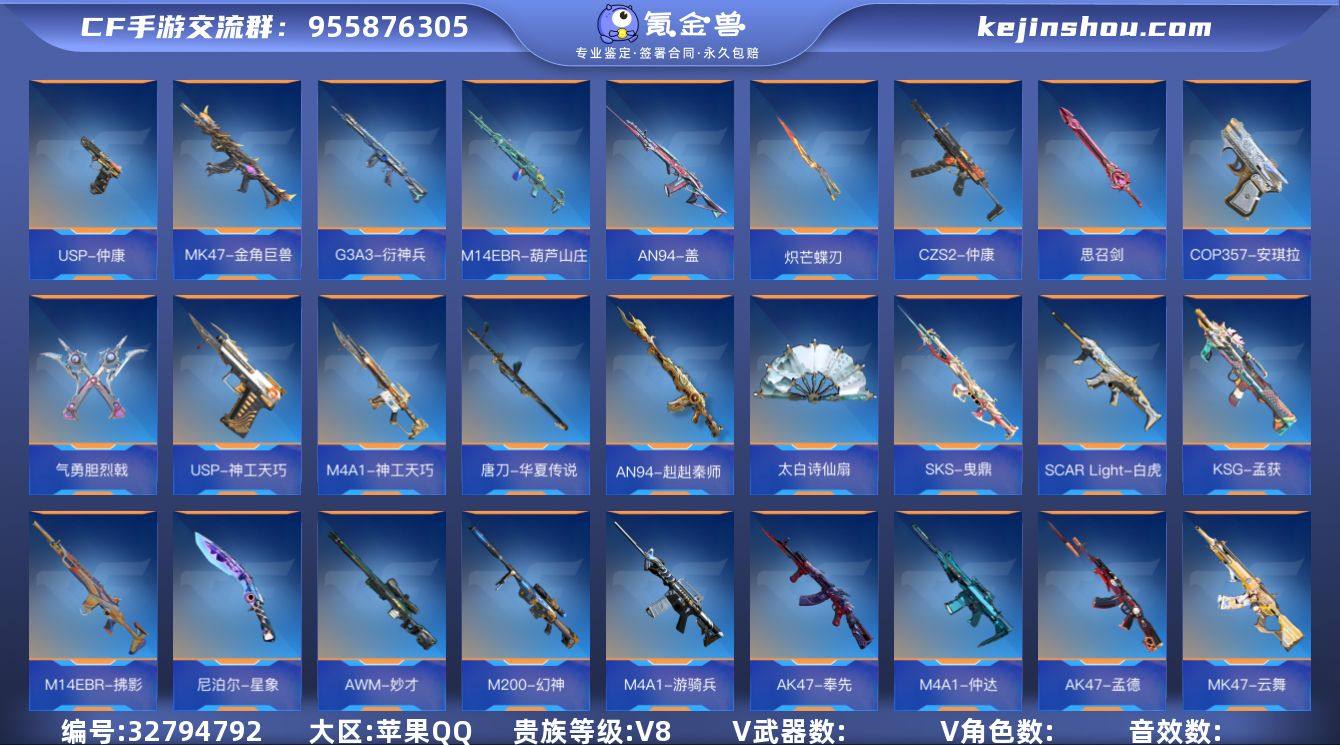 MLY757380 V8极品竞技号!AK奉先-无双,AK孟德,王者之电,王者之影,王者之隐,COP357-雷霆王者-冰霜奇迹,王者之狱,王者之誉,王者之尊丨威震天,M4游骑兵,TAC慈,TAC晴舞,M200幻神,AWM竞界荣光,CZS2-仲康,AN94-盖,AWM裁决,MK47鼓龙,MK23-幻神,KSG孟获,M4仲达-过载,81光明之神,AWM妙才,AK无影,修罗,M4雷神,巴雷特毁灭,巴雷特极光,地狱烈炎,龙啸,M4黑骑士,巴雷特安琪拉,M4死神,双管猎枪黑骑士,马来剑毁灭,AK火麒麟,M4黑龙,铁锹孟德,屠龙,尼泊尔星象,沙鹰-定军,麒麟刺,KSG天篷,M4千变,AK雷麒麟,98K黑骑士,擎天觉醒,唐刀-华夏传说,M14EBR-拂影,81阿波罗,双持斯泰尔-天使,MK47云舞,USP太白诗仙,太白诗仙扇,SKS曳鼎,激昂霸王枪,USP雷暴,Scar白虎,AN94-赳赳秦师,穷奇铁扇,沙鹰-孟德,COP雷霆,气勇胆烈戟,COP安琪拉,炽芒蝶刃,蟒蛇-妙才,QBZ金色蔷薇,M4神工天巧,USP神工天巧,思召剑,USP神罚,G3A3-衍神兵,MK47金角巨兽,地狱火,09式天神,98K血月,USP-仲康,嗜血金鲨,M14EBR-葫芦山庄,AWM天龙,风之子,COP绚樱,天使猎弩丨葵,关小雨,樱,蝴蝶,瞳,蔡文昭,祝融夫人,宋雨琦,木兰丨无双,过载,冰霜奇迹,幻神音效卡,仲达音效卡