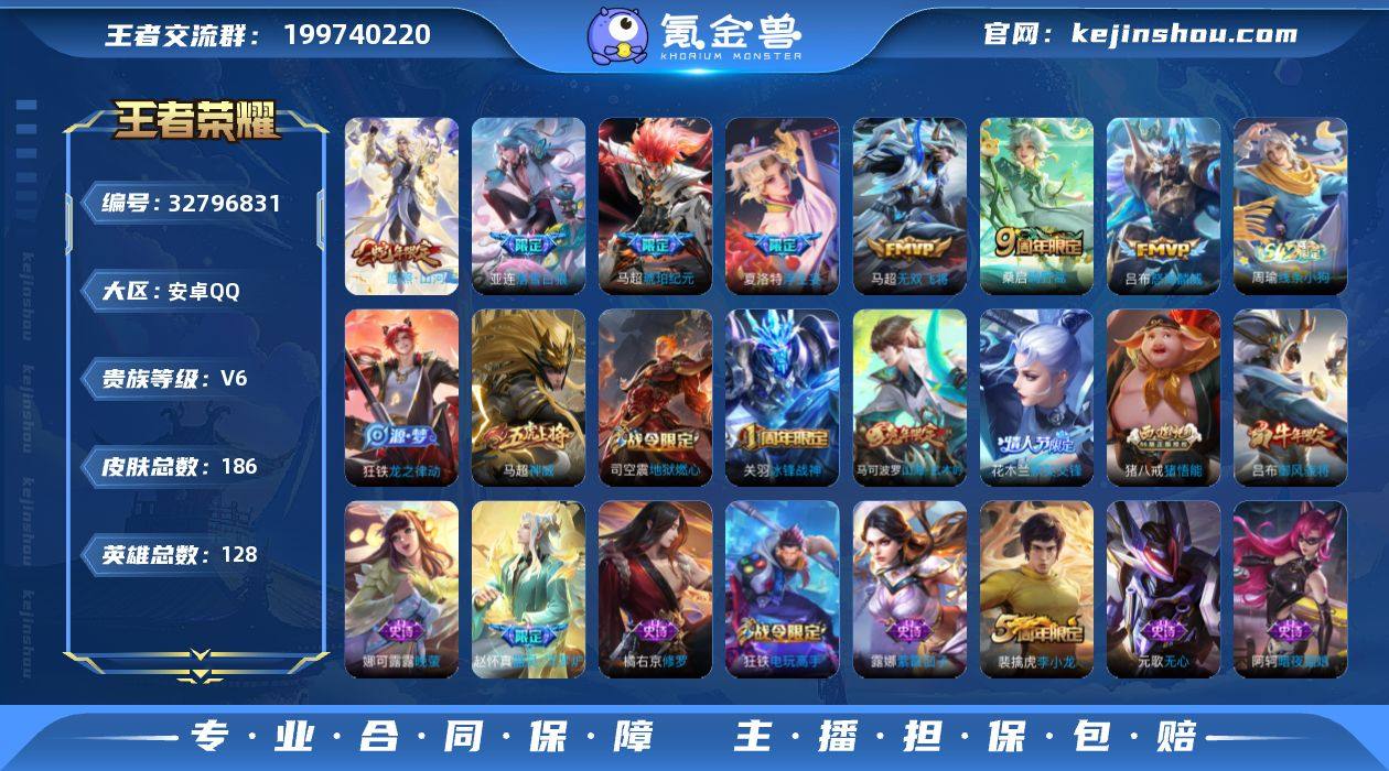 MWZ106300【巅峰对抗路56段 省标马超v6 英雄128 皮肤186 传说7对抗路56段 4金标 金标马超11064战力 金标猪八戒10448战力 金标亚连10060战力 金标老夫子9566战力】安卓Q-186皮肤-128英雄 【传说皮肤】 浮生妄 鸣野蒿 琥珀纪元 愿照·山河定 落雪白狼 无双飞将 怒海麟威 【史诗皮肤】 星界战将 冰锋战神 器灵·浮梦炉 默契交锋 谧流熔炉 御风骁将 神威 龙之律动 地狱燃心 线条小狗 山海·玄木吟 聚星闪耀 江河有灵 决胜大满贯 百解令 荣光圣徽 顽趣 幽灵船长 功夫厨神 女仆咖啡 魅力维加斯 魔术师 鹰眼统帅 圣诞恋歌 无限星赏官 鬼剑武藏 水晶猎龙者 修罗 暗隐猎兽者 航海奇遇记 千年之狐 逐浪之夏 德古拉伯爵 紫霞仙子 金属风暴 龙骑士 晚萤 李小龙 猫狗日记 水果甜心 乘风破浪 苍穹之光 黎明之约 心灵战警 暗夜贵公子 纤云弄巧 乱世虎臣 皇家上将 猪悟能 高山流水 无心 五谷丰年 电玩高手 暗夜猫娘 星夜王子 特工魅影 原初追逐者 【勇者皮肤】 春野之旅 金庭之子 云中旅人 探海日志 魅影绮裳 海盐诗旅 流音漫舞 天穹祈灯 古海寻踪 魅影绮裳 铁骨偃魂 苍林狼骑 破局者 破局者 零食大作战 危途狂花 鸿运当头 噬灭天穹 云械蓝图 剑破天穹 熔金海岸 鸿运当头 龙舞盛年 功夫炙烤 雪境...