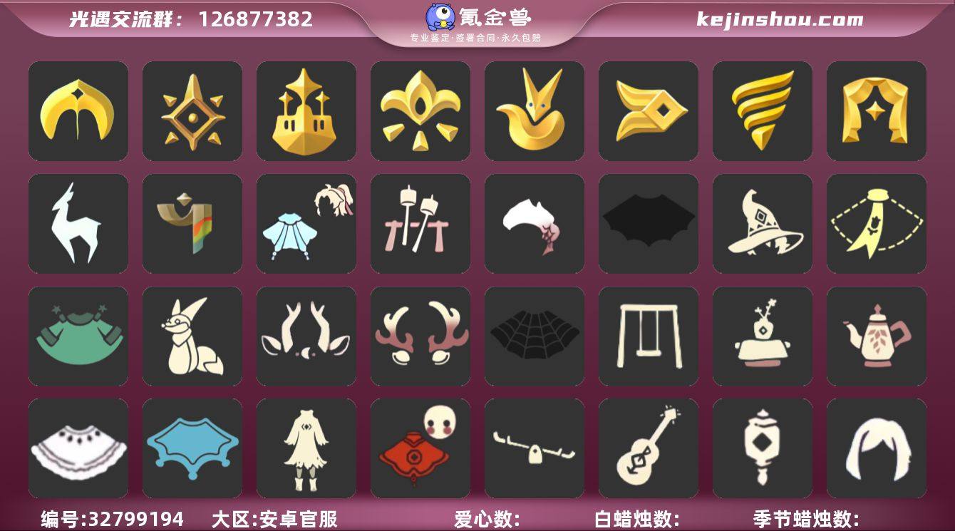 账号类型: 手机账号 季节已毕业: 圣岛季,预言季,梦想季,小王子季,风行季,潜海季,表演季,集结季,九色鹿季,彩染季 完成地图: 晨岛,云野,雨林,霞谷,暮土,禁阁,全图毕业 珍稀物品: 阿努比斯(狗头),白枭,玫瑰花 礼包: 蝙蝠套,巫师,围巾,星球斗,小狐狸,九色鹿角,鹿角,蜘蛛斗,秋千,茶桌,茶壶,白绒金,瑞雪,女巫裙,福娃,跷跷板,吉他,灯笼,奔跑发型,彩虹帽,雪花球,橘子,贝壳,黄伞,兔子,南瓜,枯角,雪花,猫背饰,星月头饰,四叶草,创始人,蛛网朋克,篝火点心礼包,青衫落拓礼包 裤子: 武士裤