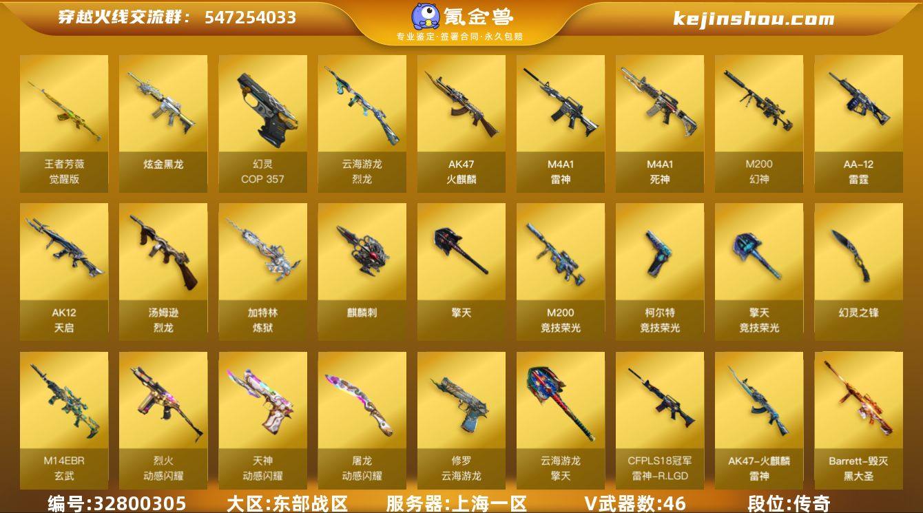 【ky5441】上海一区-50V-1王者武器数-1炫金武器数 【热门武器】:M14EBR-玄武,M200-幻神,M200-竞技荣光*2,汤姆逊-烈龙,加特林-炼狱,裁决-雪莉杨,USP-雷暴,COP 357-幻灵 【王者炫金武器】:炫金黑龙 【音效卡】:修罗-云海游龙音效卡 【皮肤】:雷神-R.LGD-CFPLS18冠军*2,火麒麟-雷神,毁灭-黑大圣皮肤,修罗-星空 【角色】:电竞教官-云悠悠,战地猎狐,王者影豹,乔伊教练,云海玲珑,初恋灵狐,风暴女,虎妞,龙儿-小淘气,麻雀,潘多拉-X,斯沃特-X 【人偶武器】:裁决-雪莉杨,Barrett-云海玲珑 【挑战大师】:激光毁灭者III-白马银枪,试炼破坏者III 【英雄级武器】:AK47-火麒麟,M4A1-雷神*2,M4A1-死神,AK12-天启,M14EBR-玄武,烈火-动感闪耀,王者芳薇-觉醒版,M200-幻神,M200-竞技荣光*2,加特林-炼狱,汤姆逊-烈龙,烈龙-云海游龙,AA-12-雷霆,USP-雷暴,COP 357-幻灵,柯尔特-竞技荣光*2,天神-动感闪耀,修罗-云海游龙,擎天,麒麟刺,幻灵之锋,擎天-竞技荣光*2,屠龙-动感闪耀,擎天-云海游龙,高爆手雷-幻灵*4,高爆手雷-竞技荣光,手雷-动感闪耀,手雷-云海游龙,闪光弹-幻灵*3,闪光弹-竞技荣光*2,烟雾弹-幻灵*3,烟雾弹-竞技荣光*2,M4A1-赤...