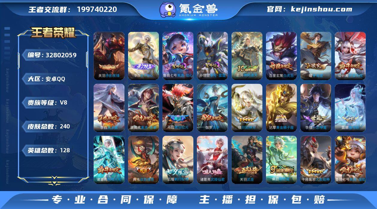 账号亮点:关羽赤影疾锋 李白碎月剑心 后羿神树通天,嬴政玄雷天君,桑启鸣野蒿,典韦战鼓燎原,马超琥珀纪元,露娜霜月吟,宫本武藏惊梅引,云缨鹤归松栖,马可波罗妄想实况,孙策挚爱之约,裴擒虎寅虎赤拳,鲁班七号寅虎瑞焰,貂蝉遇见胡旋,曜李逍遥 ,公孙离祈雪灵祝,诸葛亮时雨天司,镜炽阳神光,虞姬启明星使,孙悟空零号赤焰,关羽武圣,李信一念神魔,伽罗太华,张良黄金白羊座,干将莫邪久胜战神,达摩黄金狮子座,百里玄策白虎志,后羿黄金射手座,诸葛亮武陵仙君,李白凤求凰688-6 【荣耀典藏】:关羽赤影疾锋 【无双皮肤】:李白碎月剑心 【传说皮肤】:后羿神树通天,嬴政玄雷天君,桑启鸣野蒿,典韦战鼓燎原,马超琥珀纪元,露娜霜月吟,宫本武藏惊梅引,云缨鹤归松栖,马可波罗妄想实况,孙策挚爱之约,裴擒虎寅虎赤拳,鲁班七号寅虎瑞焰,貂蝉遇见胡旋,曜李逍遥 ,公孙离祈雪灵祝,诸葛亮时雨天司,镜炽阳神光,虞姬启明星使,孙悟空零号赤焰,关羽武圣,李信一念神魔,伽罗太华,张良黄金白羊座,干将莫邪久胜战神,达摩黄金狮子座,百里玄策白虎志,后羿黄金射手座,诸葛亮武陵仙君,李白凤求凰 【限定皮肤】:姜子牙天穹之誓,狄仁杰阴阳师,廉颇寅虎御...