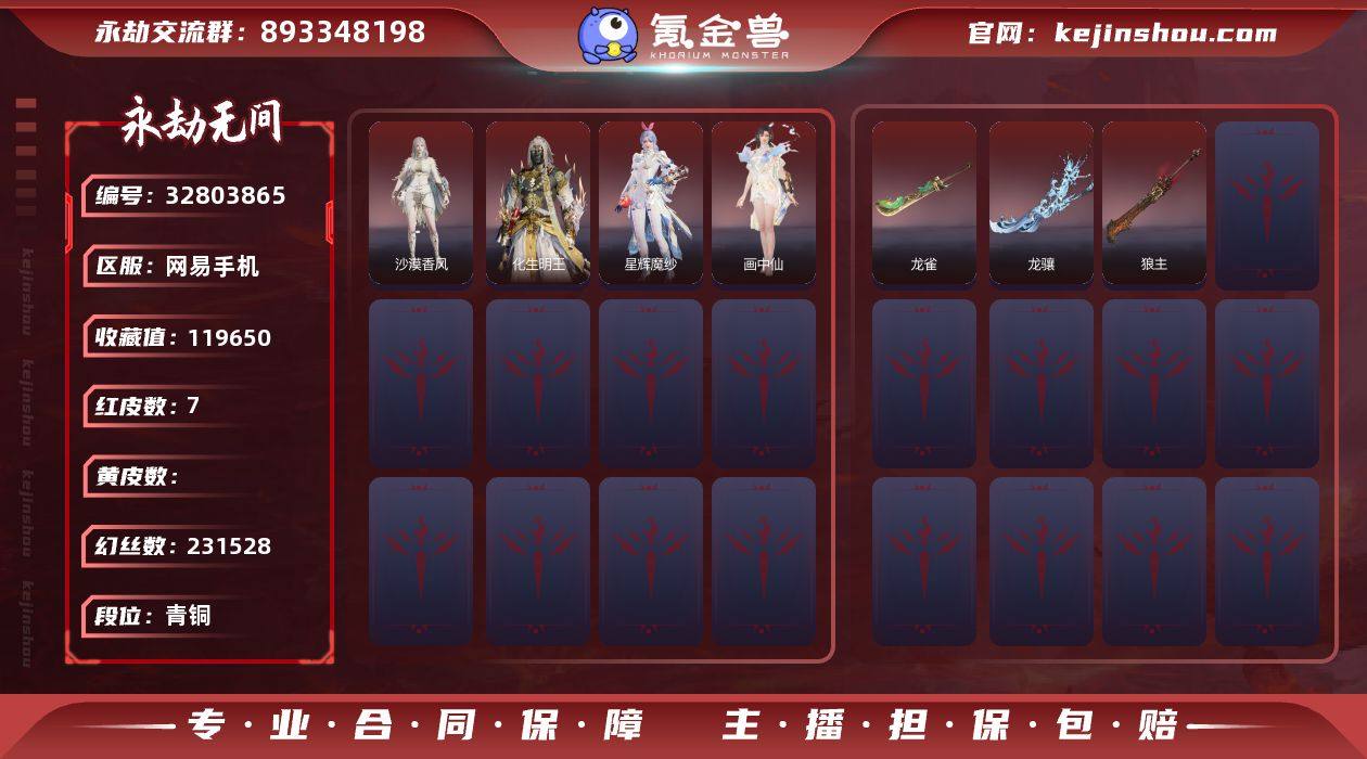 WJ5691,网易手机,可换绑,7红150金,等级124,收藏值119650,三人段位青铜5,幻丝231528,金砖3418,通行证Lv.49,声望14,四海,春木,红色神品,沙漠香风,星辉魔纱,画中仙,化生明王,龙雀,狼主,龙骧,角色金色皮肤,赤丹朱湛,凛冬,冬无归,武道无穷咏春,绝伦袍,春不敛,丽娘,卷王,寿竹云春,孤影戎装,赤焰战灵,日月明,林七夜,雷行猎手,白熊,鹅黄纱梦,风雨谐,炽羽,康复之星,紫藤神子,星空投影,春桃笑,紫金玉女,昆仑圣女,暗夜利刃,妖刀姬,湘夫人,鸢纱,赤雾烟霞,伏波龙女,铁面,弘毅袍,剪春漪,腥红之月,玄铜飞军,镇恶天下第一蓄转振,斩银河,前方禁行,星辉环月,千钧羽,仙彩,长虹,镰鼬剃,孤灯行,输液架,宝月琉璃,焚夜,仙舞,嘶风,赤影玄印,永乐宝剑,醉花风,切影,尽春锋,饰品金色皮肤,远黛,寒兔,玄陶俑面女,目瞪马呆女,一只耳,玄陶俑面男,目瞪马呆男,名花,辉晶星辰,绷带头套,季中赛2025瀚沙,神辉,碎空龙尾,绒熊奶泡,春木,砚台,鉴心冠,活动中心手机绑定无法解绑,