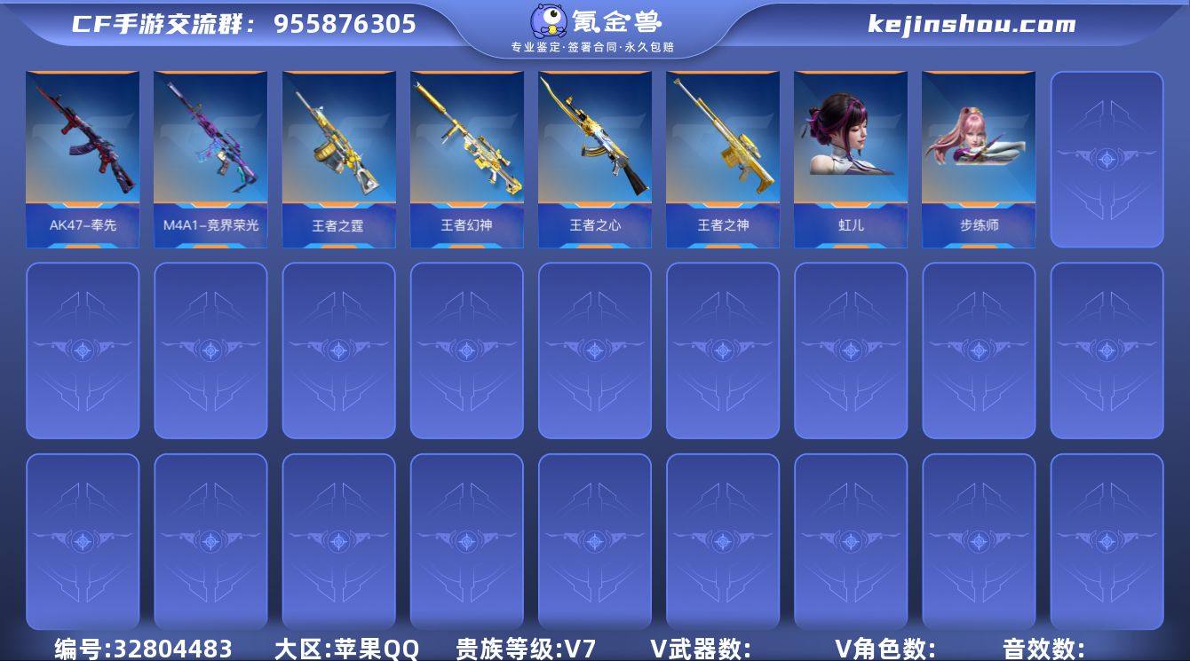 苹果Q\贵族7\虹儿\步练师\AK47-奉先\王者幻神\M4A1-竞界荣光\王者之心\ 王者之神-冰霜奇迹\王者之霆\C0P 357-雷霆\\AN94-盖\CZs2-仲康\M200-幻神\COP357-安琪拉\详请见图