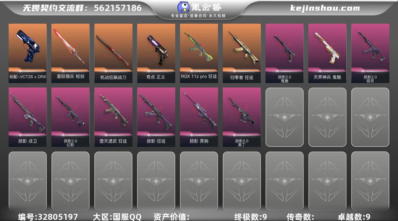 【3.1w库存掠夺2.0套装.摩托直刀.落英飞旋.古神镰刀.四狂徒归零者.显卡.弃王】YXy6174【无二次】【因赛季更新游戏段付以上号为准!】 【套装】:掠影//2.0套装 【英雄】:幻棱,炼狱,维斯,暮蝶,钛狐,壹决,铁臂,捷风,雷兹,幽影,不死鸟,贤者,猎枭,蝰蛇,零,芮娜,奇乐,尚勃勒,霓虹,斯凯,夜露,星礈,K/O,海神,盖可,黑梦,钢锁 【近战武器】:近战武器-影钩,近战武器-落英飞旋,近战武器-机动狂飙 战刀,近战武器-夜刃诡镰,近战武器-星际猎兵 短剑 【狂徒】:狂徒-归零者,狂徒-RGX 11z Pro,狂徒-堕天遗武,狂徒-掠影 【幻影】:幻影-掠影//2.0 【戍卫】:戍卫-掠影 【冥驹】:冥驹-掠影 【奥丁】:奥丁-掠影//2.0 【骇灵】:骇灵-掠影//2.0,骇灵-无限竞技 【VCT手枪】:标配-VCT26 x DRX 【正义】:正义-奇点,正义-超限闪存,正义-纳米打击 【鬼魅】:鬼魅-天界神兵,鬼魅-掠影//2.0,鬼魅-诡秘蛇影,鬼魅-星云暗涌 【卡面】:终章:激斗汉堡 卡面,进入射程 卡面,《双城之战》拥抱 卡面,精灵大战 卡面,欢迎来到底城 卡面,南瓜盛典 卡面,修车达人 卡面,正义的化身 卡面,时间到 卡面,最高舞台 卡面,声感陷阱设计图 卡面,梦幻奶茶 卡面,无畏契...