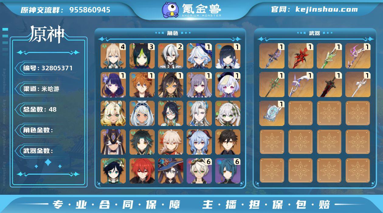 【原神】冒险等级:60,五星数量:32,五星角色:琴 * 4命,提纳里 * 3命,阿蕾奇诺 * 2命,迪希雅 * 1命,芙宁娜 * 1命,达达利亚 * 1命,刻晴 * 1命,雷电将军 * 1命,七七 * 1命,夜兰 * 1命,莫娜,玛拉妮,希诺宁,温迪,钟离,那维莱特,闲云,赛诺,纳西妲,迪卢克,枫原万叶,甘雨,魈__五星武器:赤月之形,裁叶萃光,阿莫斯之弓,飞雷之弦振,风鹰剑,和璞鸢,狼的末路,四风原典,赦罪__四星角色:班尼特 * 6命,行秋 * 6命,久岐忍 * 6命,鹿野院平藏 * 6命,珐露珊 * 6命,凝光 * 6命,迪奥娜 * 6命,砂糖 * 6命,米卡 * 6命,柯莱 * 6命,芭芭拉 * 6命,托马 * 6命,烟绯 * 6命,诺艾尔 * 6命,罗莎莉亚 * 6命,雷泽 * 6命,菲谢尔 * 6命,北斗 * 6命,夏沃蕾 * 6命,香菱 * 5命,莱依拉 * 5命,九条裟罗 * 4命,云堇 * 4命,蓝砚 * 4命,五郎 * 4命,夏洛蒂 * 4命,瑶瑶 * 3命,坎蒂丝 * 3命,重云 * 3命,绮良良 * 2命,辛焱 * 2命,琳妮特 * 2命,多莉 * 1命,欧洛伦 * 1命,嘉明 * 1命,伊安珊 * 1命,卡齐娜,菲米尼,爱诺