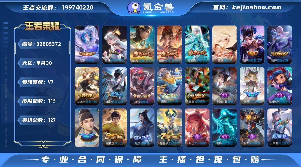 王者20213,苹果Q-V7-最强王者段位-127英雄-115皮肤-1典藏皮肤-8传说-33史诗 【英雄全皮】:孙权全皮 【荣耀典藏】:貂蝉幻阙歌 【传说皮肤】:狄仁杰神骥赴朔漠,貂蝉神骥聚万邦,貂蝉曦玄引,诸葛亮时雨天司,貂蝉猫影幻舞,虞姬云霓雀翎,花木兰冠军飞将,貂蝉仲夏夜之梦 【限定皮肤】:姜子牙天穹之誓,李白谪仙醉月,狄仁杰阴阳师,赵云皇家上将,妲己时之彼端,孙尚香蔷薇恋人,元歌云间偶戏,夏侯惇朔风刀,狄仁杰魔术师,狄仁杰万华元夜,达摩沙漠行僧,项羽海滩派对,老夫子醍醐杖,程咬金演武夺筹,兰陵王金庭之子,亚瑟潮玩骑士王,后羿如梦令,李元芳银河之约,李元芳云中旅人,钟馗驱傩正仪,雅典娜黎明之约,鬼谷子原初探秘者,鬼谷子五谷丰年,诸葛亮时雨天司,苏烈千军破阵,百里玄策原初追逐者,弈星混沌棋,梦奇顽趣,沈梦溪星空之诺,沈梦溪大漠名商,明世隐疑决卦,裴擒虎李小龙,裴擒虎擒涛扼浪,云中君纤云弄巧,盾山御銮,鲁班大师探海日志,桑启海盐诗旅,张良古海寻踪,鬼谷子天穹祈灯,貂蝉曦玄引,沈梦溪龙舞盛年,周瑜熔金海岸 【年限皮肤】:诸葛亮时雨天司 【赛季限定】:盾山御銮,夏侯惇朔风刀,弈星混沌棋,明世隐疑决卦,老夫子醍醐杖,鬼...