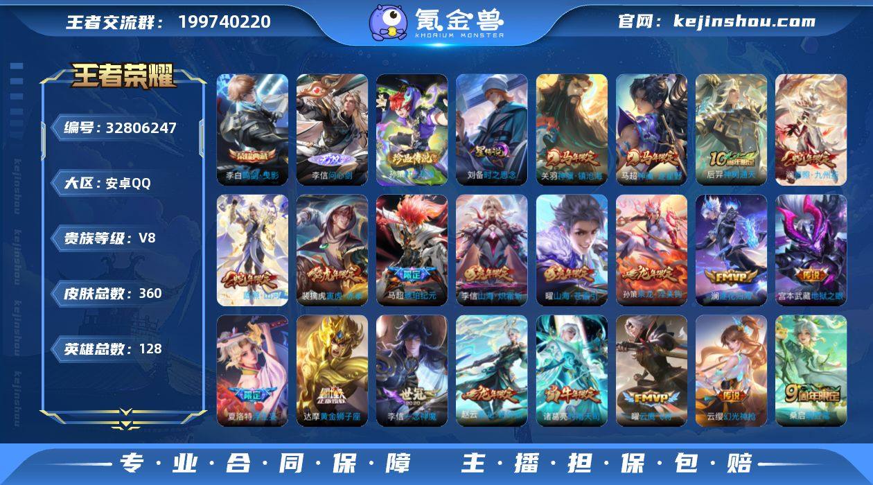 ✅ 皮肤收藏拉满:全英雄/全铭文配置,累计拥有126款限定皮肤(含2款珍品限定)、28款传说品质皮肤,限定率与传说品质率双高,收藏价值拉满! ✅ 稀缺限定扎堆:手握马超神威、孙悟空至尊宝、铠青龙志等顶流情怀限定;马超神骥·逐星野、关羽神骥·镇沧海等马年限定;西施雪境奇遇、甄姬落雪兰心等联动/周年限定,错过难再获! ✅ 珍品品质稀缺:含问心剑、时之奇旅等珍品限定,神树通天、幻光神枪等重磅传说,皮肤质感与稀缺性双在线,颜值手感双在线! ✅ 优质皮肤全覆盖:囊括地狱之眼、黄金狮子座等热门典藏/传说,百相守梦、擒涛扼浪等山海系列,茶境仙、夺宝奇兵等战令限定,各类稀缺皮肤一网打尽,满足全场景使用需求!