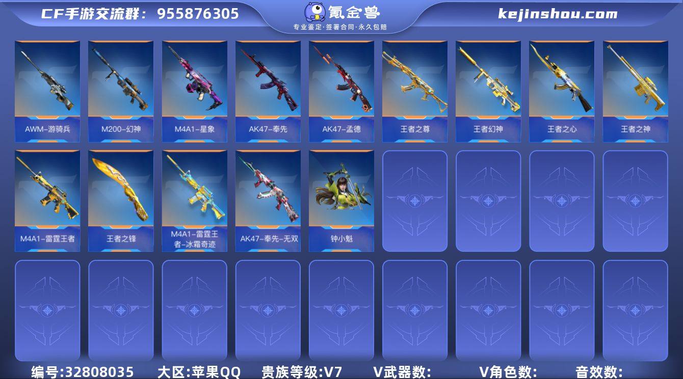 苹果Q☝贵族7☝钟小魁☝王者幻神-燃竞之巅☝M4A1一雷霆王者-冰霜奇迹☝AK47-奉先-无双☝AK47-孟德☝M4A1-星象☝AWM-游骑兵☝王者之锋-HeartShot☝王者之心☝王者之尊☝AN94-盖☝王者之神-冰霜奇迹☝M200-幻神☝C0P 357-雷霆☝COP 357-堕天神☝P90-雷暴王者☝M12S-天公☝王者之霆☝详细见图☝