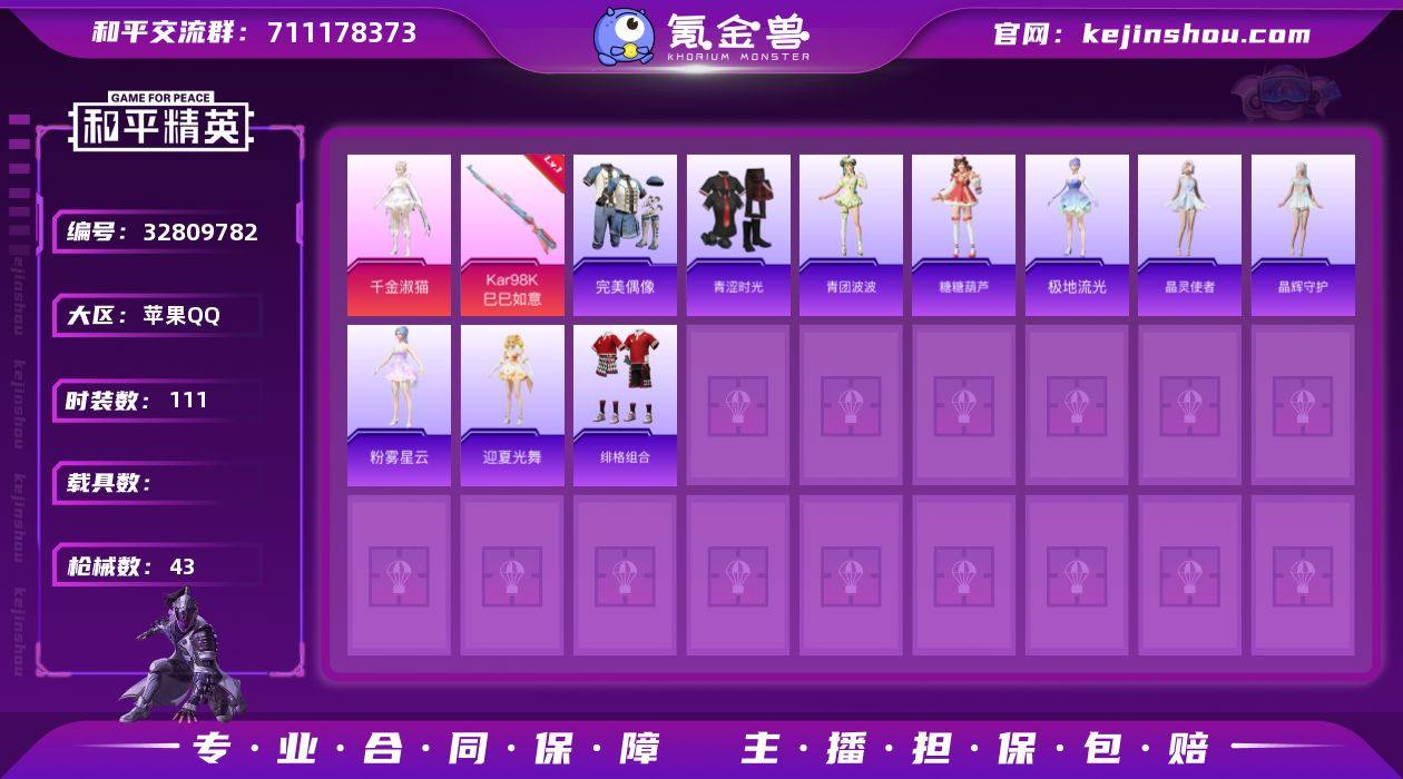 HM6780苹果Q区女号-1粉装-2特效枪-1飞行器星梦奇缘-地铁已开-14337热力值-31套装-43枪皮【优质套装】: 千金淑猫【特效枪等级】:Kar98K-巳巳如意(一级- Kar98K-巳巳如意)【优质武器皮肤】: Kar98K-巳巳如意【稀有武器皮肤】: 汤姆逊-星梦奇缘 20-H-星梦奇缘 Kar98K-巳巳如意 TMP-9-雪月幻音 S686-雪月幻音 AWM-天降萌叽 UZI-炫彩节奏 DP-28-彩虹符号 MG3-幻世战舞者 20-H-糖糖葫芦 蜜獾-糖糖葫芦 UMP45-糖糖葫芦 SPAS-12-乌木金纹 平底锅-糖糖葫芦 P18C-糖糖葫芦 VSS-香桃花海 Mini14-香桃花海【其他套装】: 千金淑猫 粉雾星云 晶灵使者 青团波波 糖糖葫芦 晶辉守护 极地流光 迎夏光舞 绯格组合 青涩时光 完美偶像【优质飞行器】: 星梦奇缘飞行器【优质降落伞】: 星梦奇缘降落伞 辉云木星降落伞 霁蓝缠春降落伞 炫彩糖果降落伞 普通降落伞 千金淑猫降落伞 闻鸡启五降落伞 未来领航者降落伞 糖糖葫芦降落伞 香桃花海降落伞