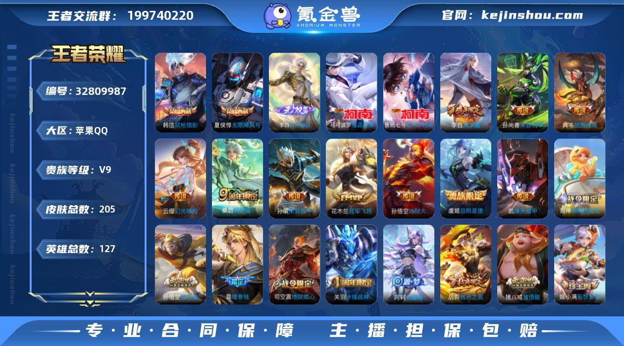 【WZ181861】苹果Q-V6-至尊星耀IV段位-127英雄-205皮肤-2典藏皮肤-1无双-2珍品传说-10传说-76史诗【荣耀典藏】:夏侯惇无限飓风号,韩信弑枪猎影【无双皮肤】:李白碎月剑心【珍品传说】:鲁班七号江户川柯南,马可波罗怪盗基德【传说皮肤】:云缨幻光神枪,桑启鸣野蒿,典韦战鼓燎原,孙策末日机甲,铠绛天战甲,虞姬启明星使,花木兰冠军飞将,李白凤求凰,孙尚香末日机甲,孙悟空地狱火【限定皮肤】:白起狰,暃埋骨钱,蔡文姬夏日便利店,大乔绒语心约,虞姬夏日便利店,姜子牙天穹之誓,杨戬破阵退雄兵,狄仁杰阴阳师,虞姬凯尔特女王,赵云皇家上将,嬴政白昼王子,高渐离死亡摇滚,孙膑妖精王,扁鹊炼金王,芈月重明,甄姬幽恒,马可波罗逐梦之星,狄仁杰魔术师,项羽海滩派对,关羽冰锋战神,貂蝉逐梦之音,安琪拉魔法小厨娘,韩信逐梦之影,孙悟空孙行者,后羿辉光之辰,虞姬启明星使,雅典娜黎明之约,太乙真人饕餮,苏烈玄武志,裴擒虎李小龙,米莱狄御霄,云中君纤云弄巧,盾山梦圆繁星,猪八戒猪悟能,上官婉儿神器万象笔,鲁班大师探海日志,金蝉唐三藏,戈娅驭风魔法,司空震地狱燃心,阿古朵江河有灵,张良古海寻踪,高渐离燃音魔法,妲己灵卜魔法,鬼谷子天...