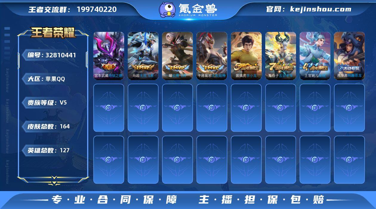 苹果Q 可二次 6传说127英雄164皮肤 神骥逐星野 愿照九州拓 无双飞将 云鹰飞将 久胜战神 地狱之眼 原初追逐者 梁祝 云间偶戏 黄忠百相守梦 李小龙 水晶猎龙者 暗隐猎兽者 猫狗日记男 猫狗日记女 金属风暴 地狱岩魂 玩趣恶龙 逐浪之夏 心灵战警 修罗 千年之狐 紫霞仙子 功夫厨神 心灵骇客 圣诞恋歌 幽灵船长 圣诞狂欢 偶像歌手 街头霸王 摇滚巨星 鬼剑武藏 冰雪圆舞曲 青焰无极 花好人间 苍威无极 万华元夜 克喵 驱傩正仪 未来纪元赵云 王者荣耀账号