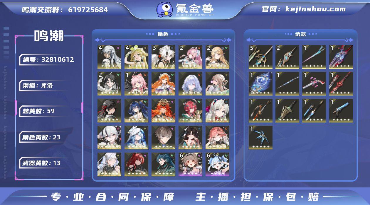 配队完整,角色练度高,带有付费翅膀,目前有六十抽,武器接近小保底,稳定拿下下一个角色01